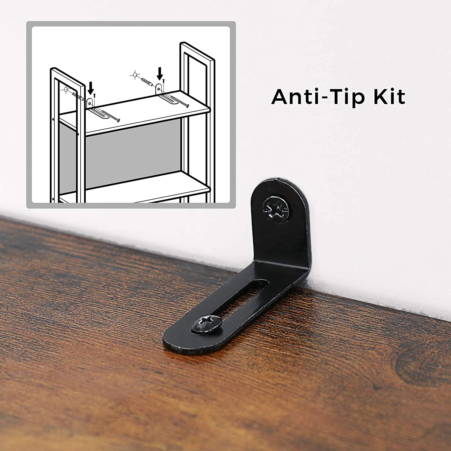 Produktdetaljer: – Färg: Vintagebrun-svart – Material: Spånskiva, stål – Storlek: 62 x 24 x 165 cm (L x B x H) – Vikt: 14 kg – Max. statisk belastningskapacitet per hyllplan: 20 kgLeveransomfattning:- 1 x bokhylla – 1 x tillbehörspaket – 1 x tippskydd – 1 x bruksanvisning (DE, EN, ES, FR, IT) VASAGLE Anmärkningar: – Av säkerhetsskäl är det förbjudet för barn att klättra på eller leka med produkten. – Fäst denna produkt på väggen med det medföljande tippskyddet.