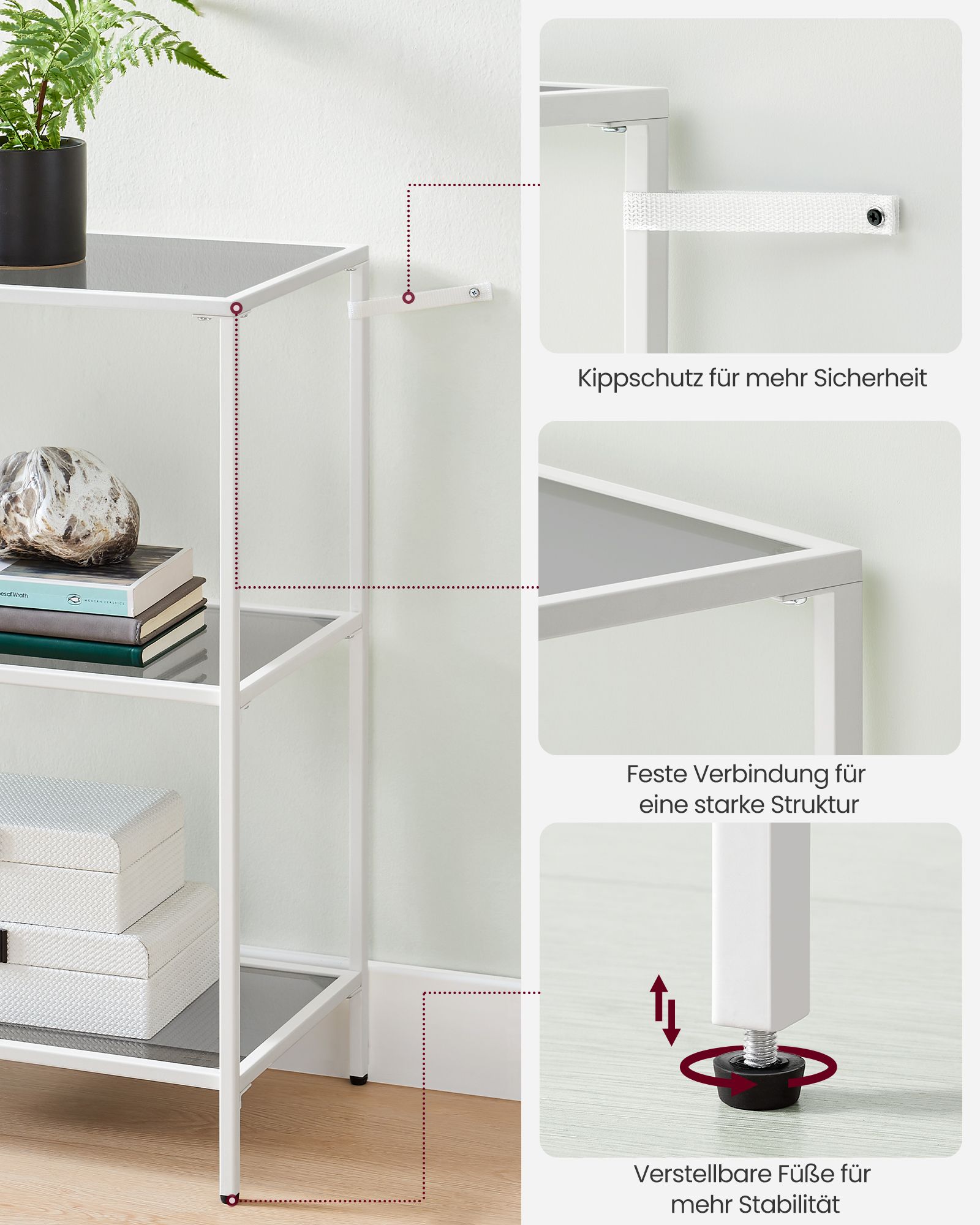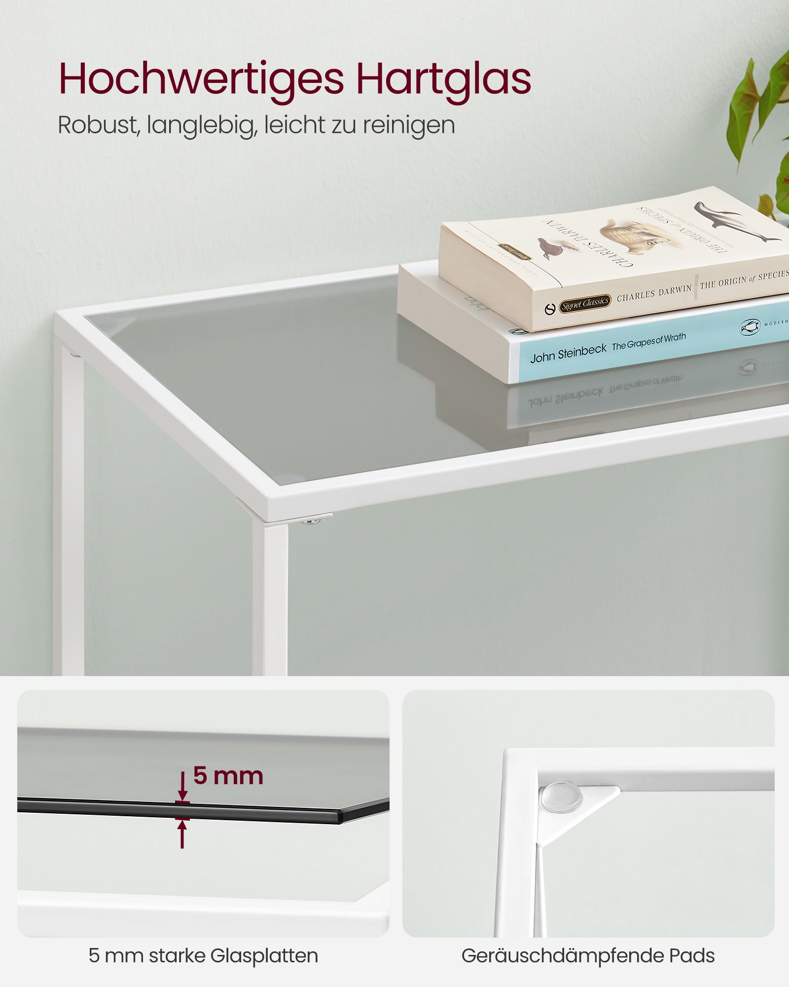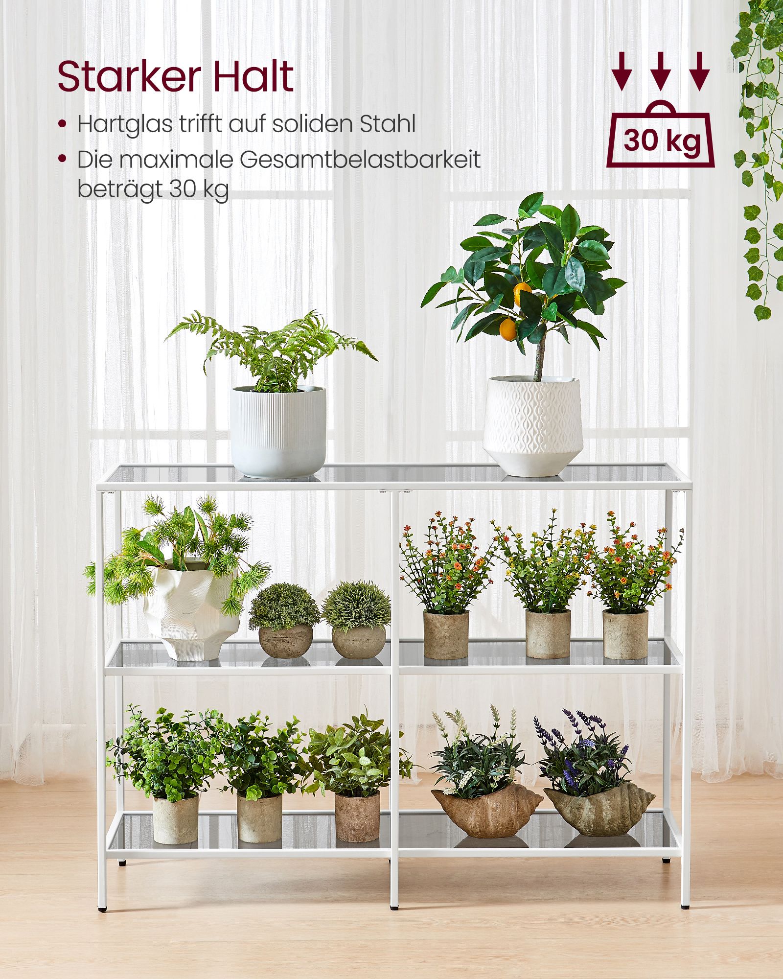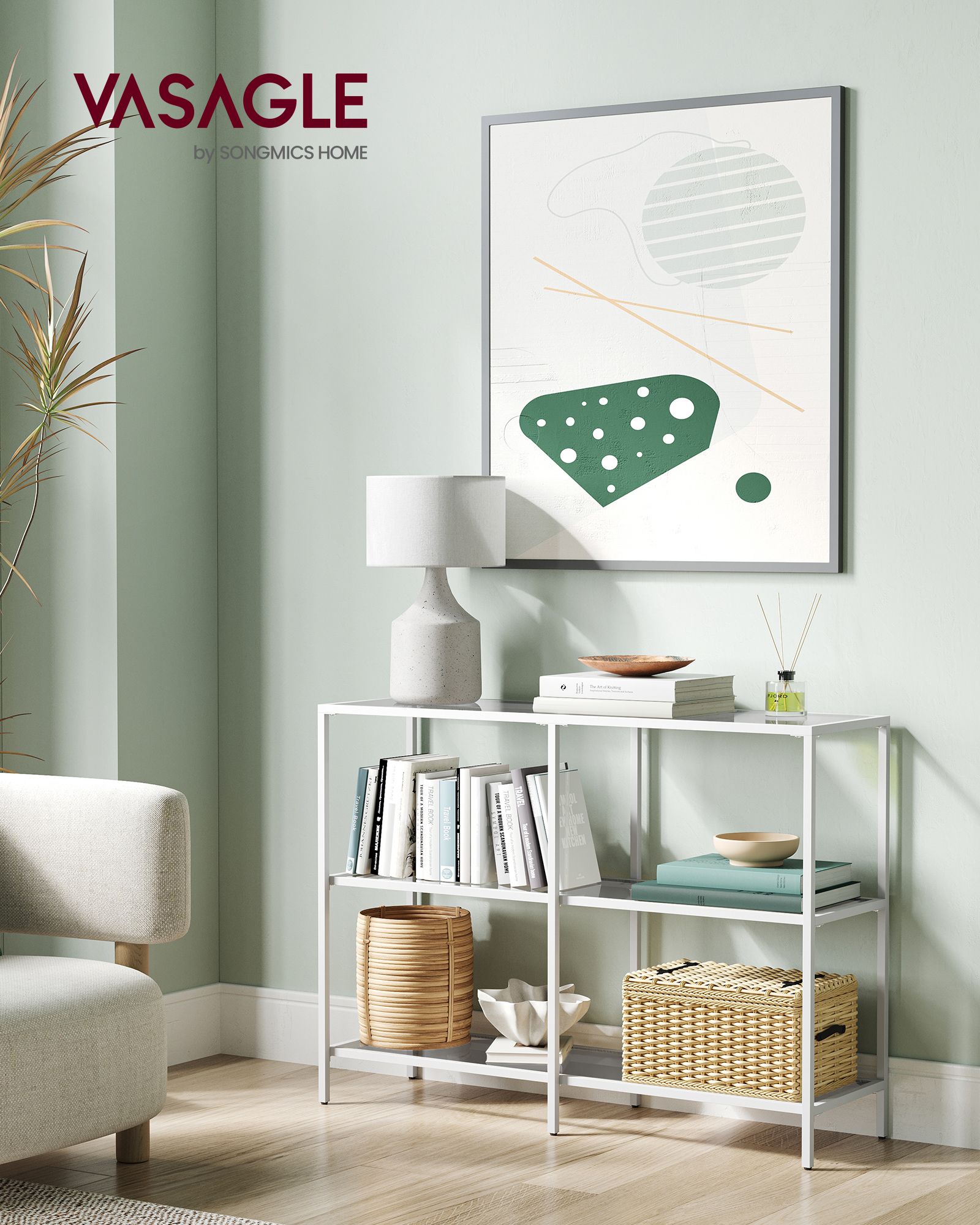 VASAGLE konsolbord, hallbord, 3 nivåer, sidobord, hyllor av hårt glas, 100 x 30 x 73 cm, metallstativ, modernt, för hall, vardagsrum, sovrum, svart LGT027B01