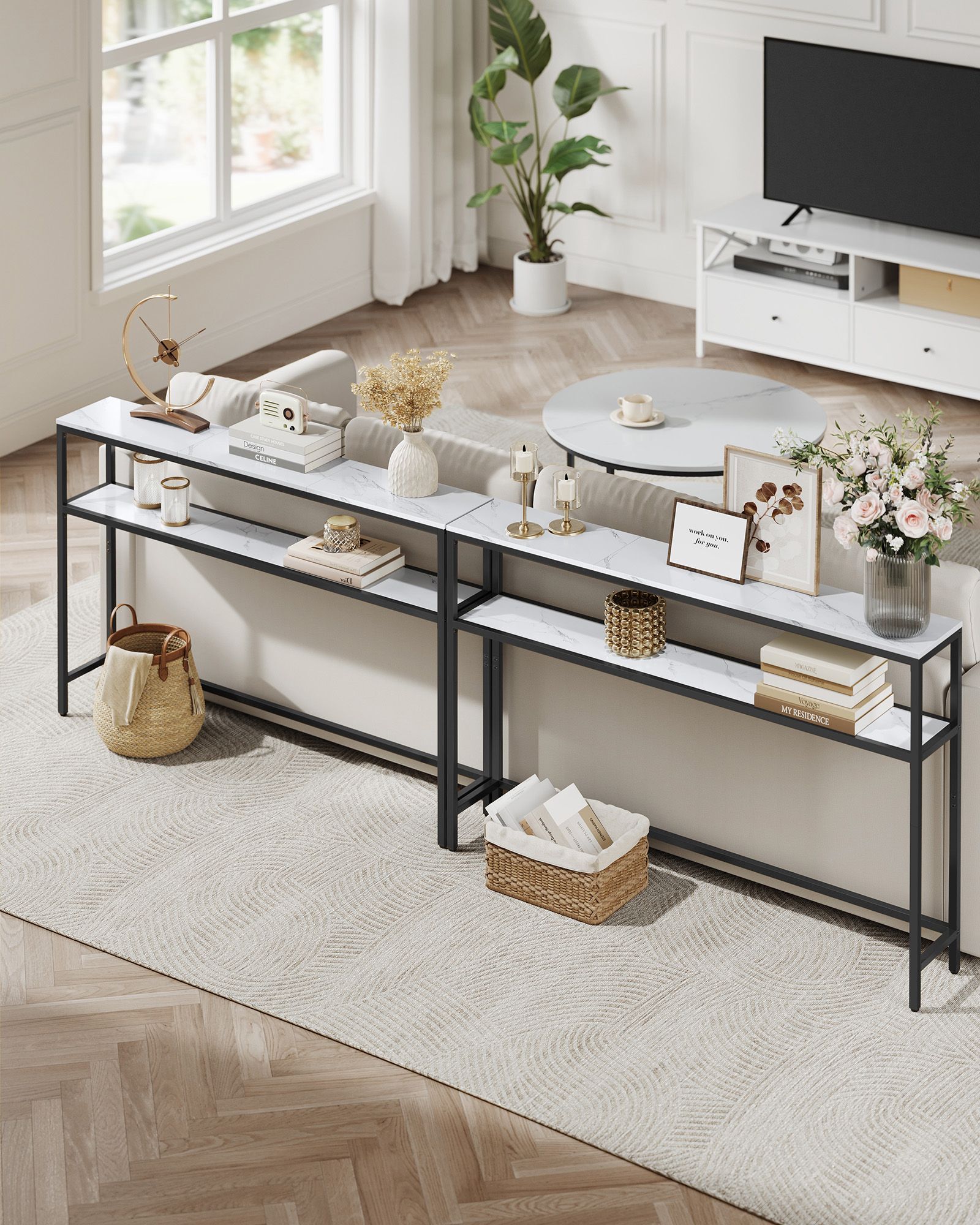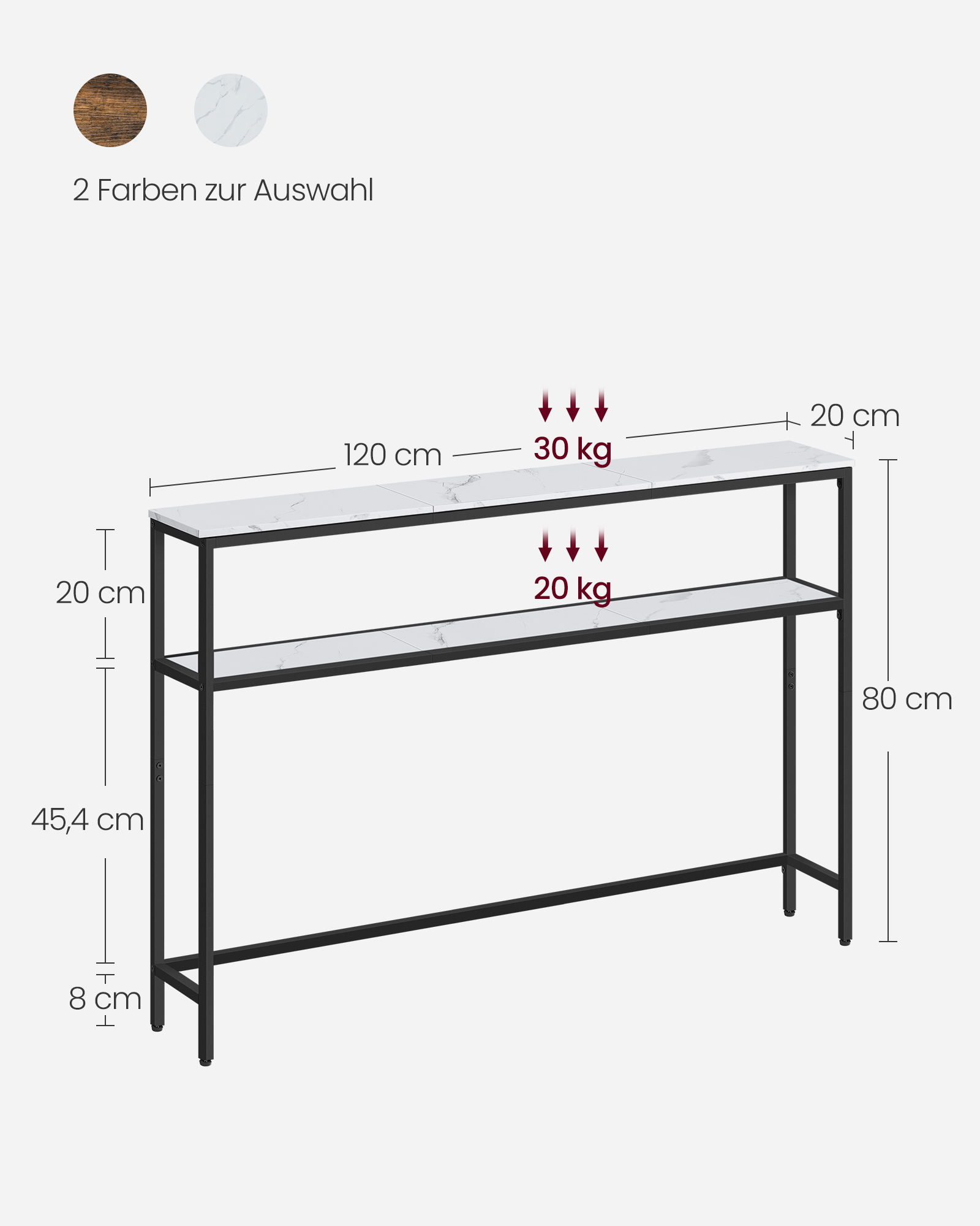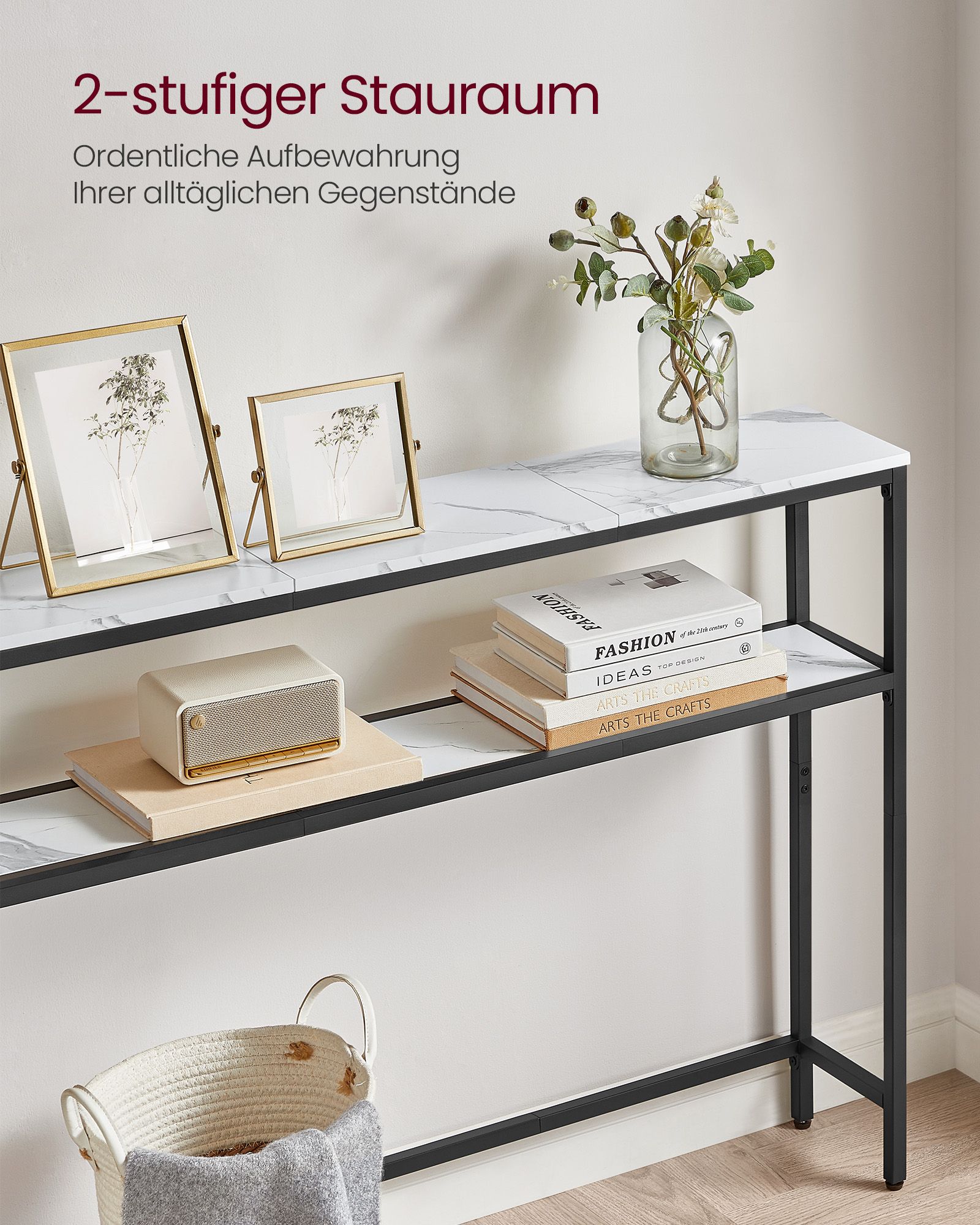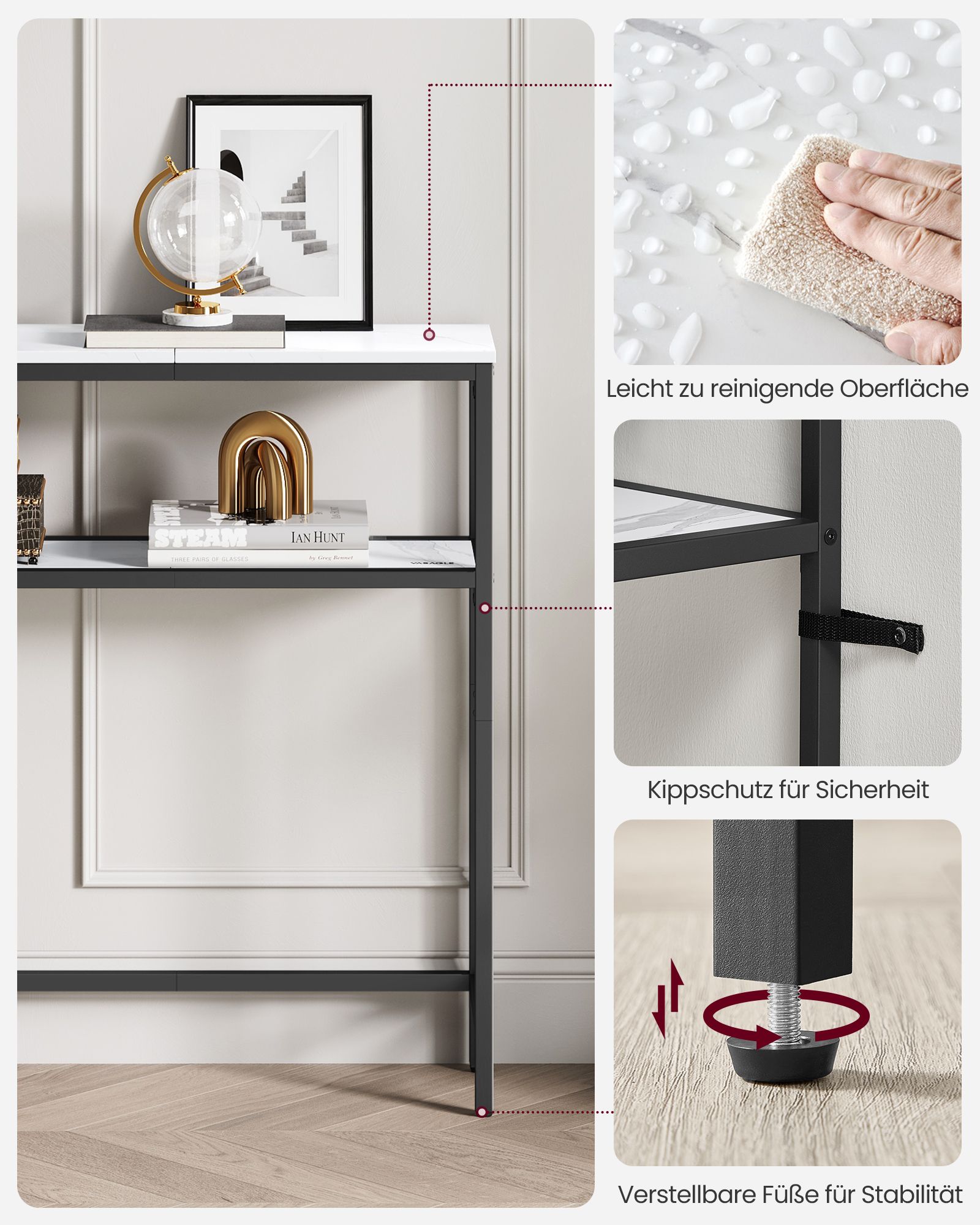 VASAGLE konsolbord, smalt soffbord med 2 hyllor, 20 x 80 x 80 cm, hallbord, 2 nivåer, för hall, vardagsrum, sovrum, antracitgrå-bläsvart LNT130B22