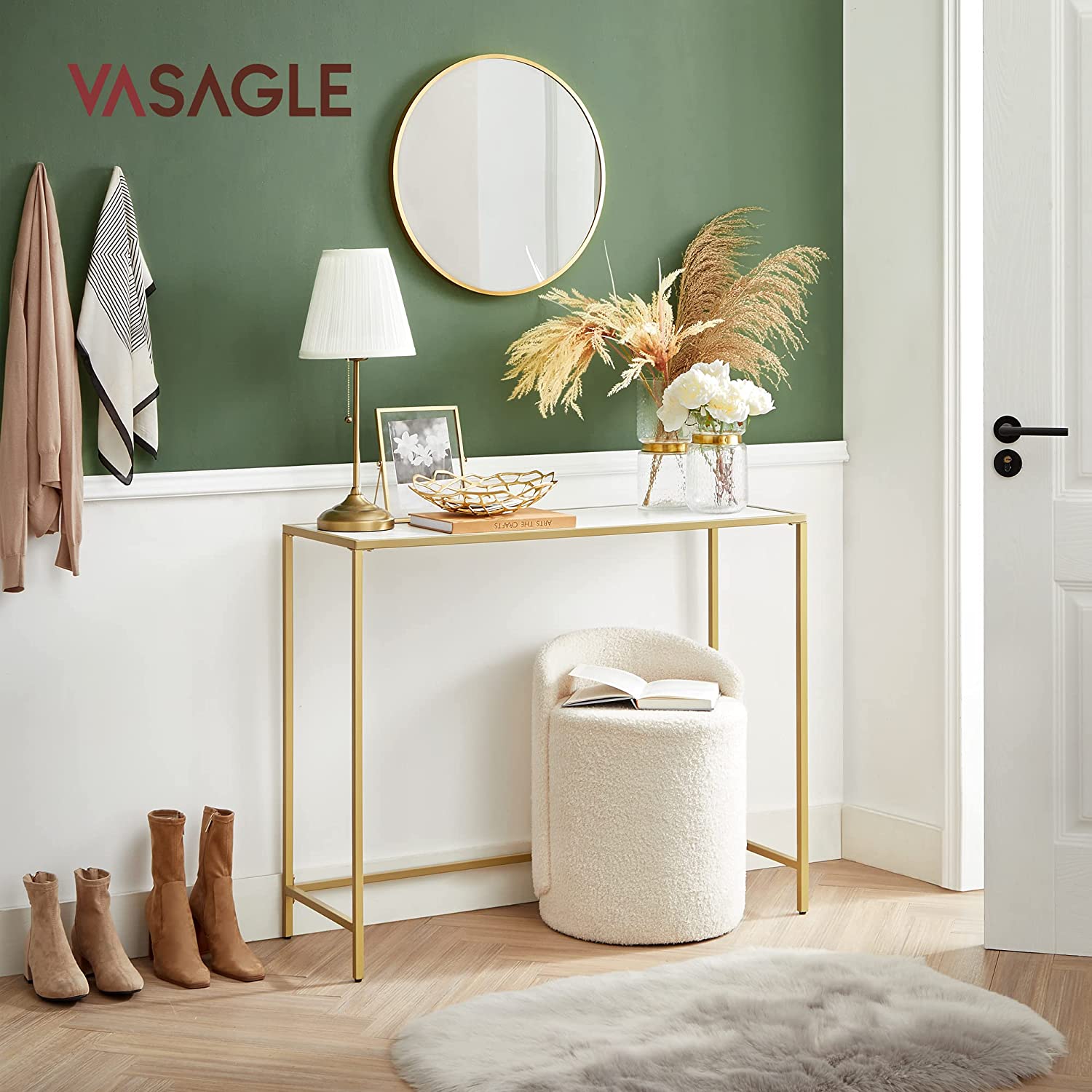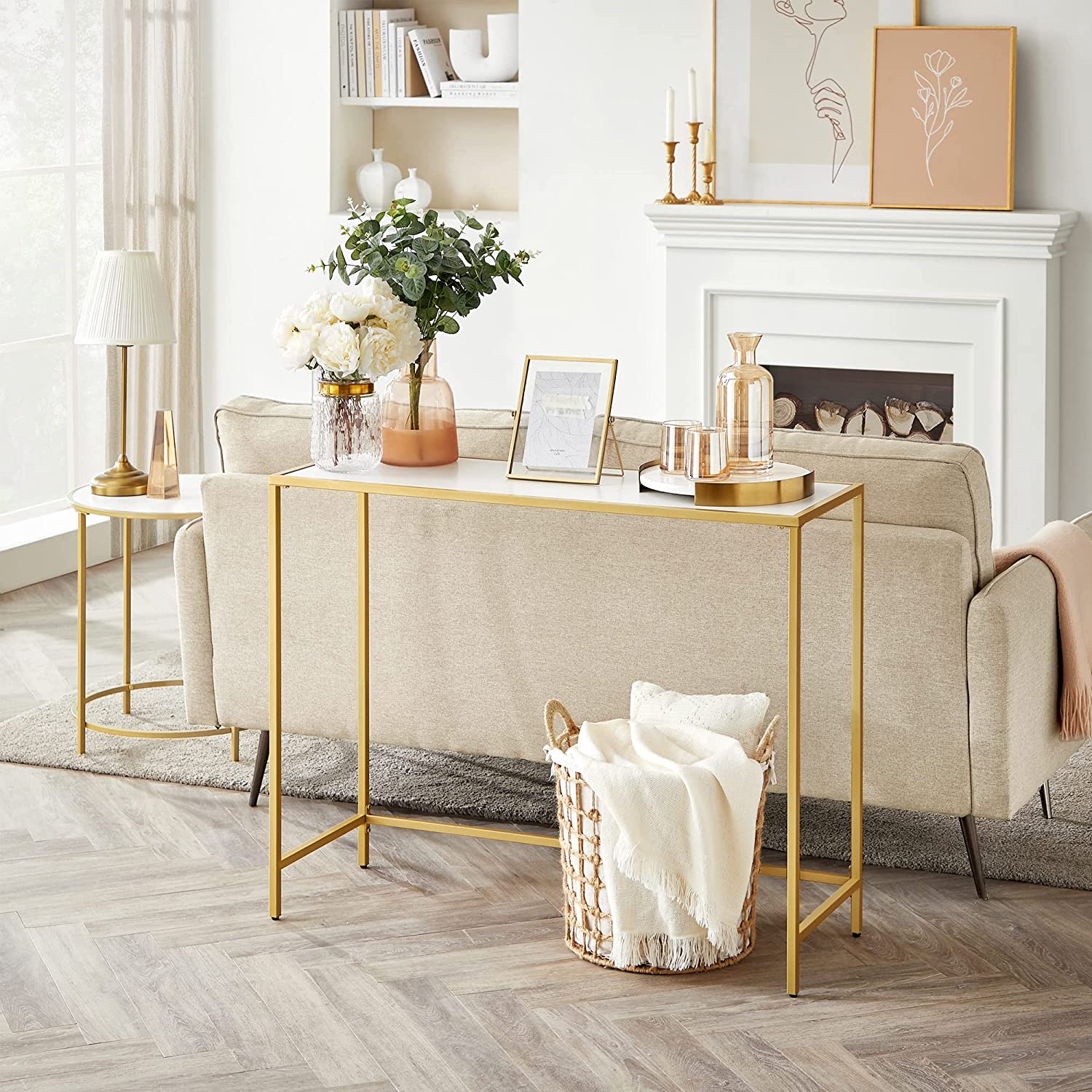 VASAGLE konsolbord med stålstativ i guldfärg-vit
