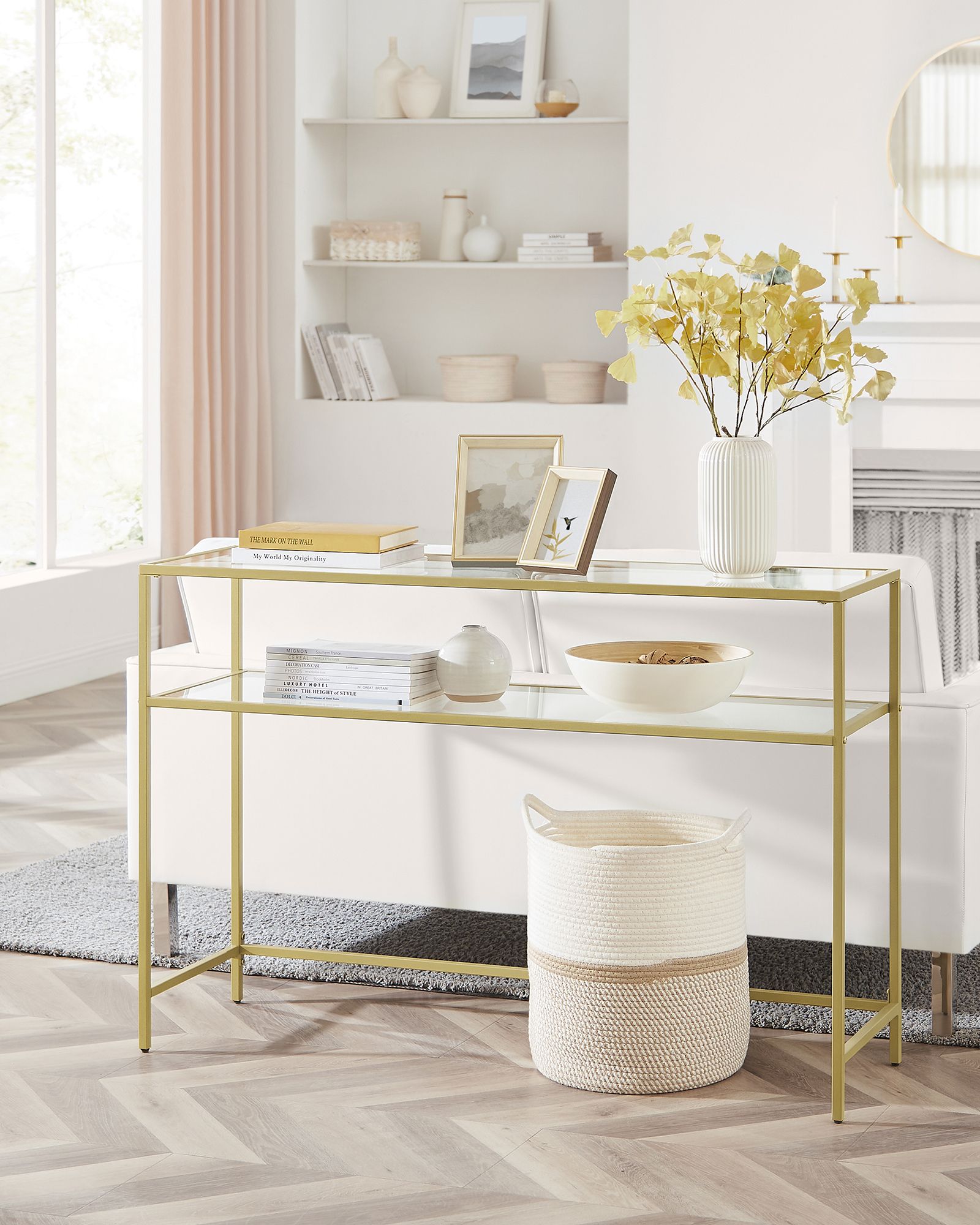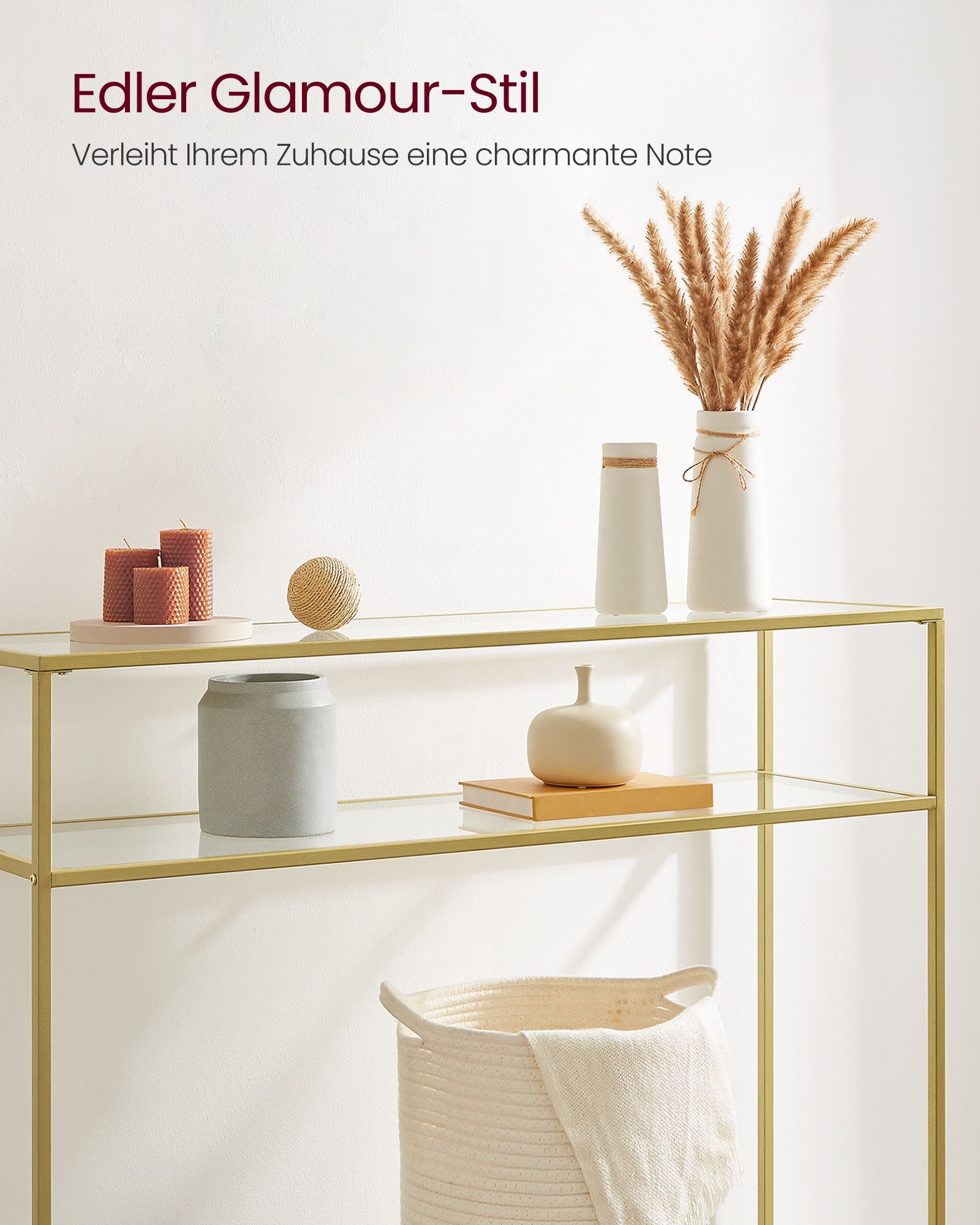VASAGLE konsolbord, sidobord, yta av hårt glas, modernt soffbord, enkel montering, justerbara ben, vardagsrum, hall