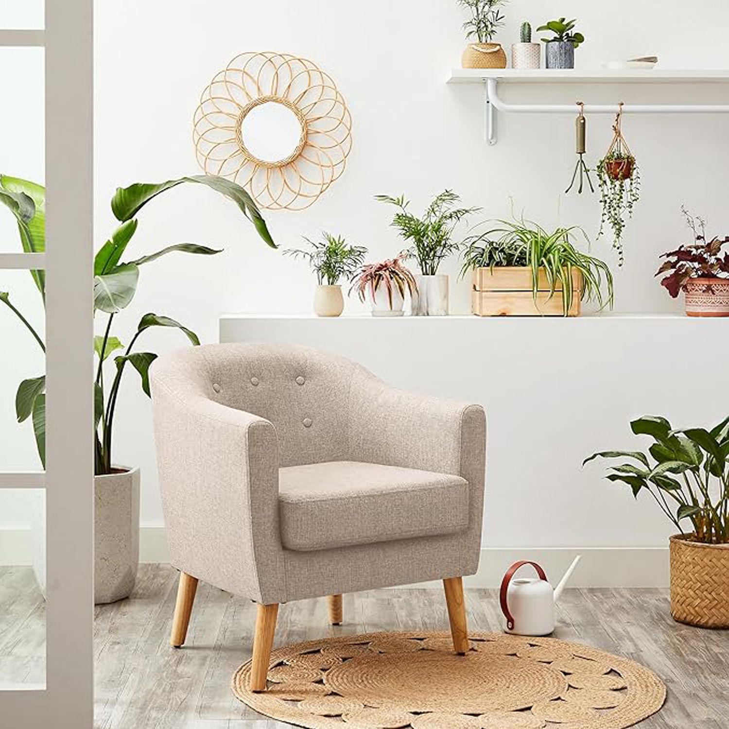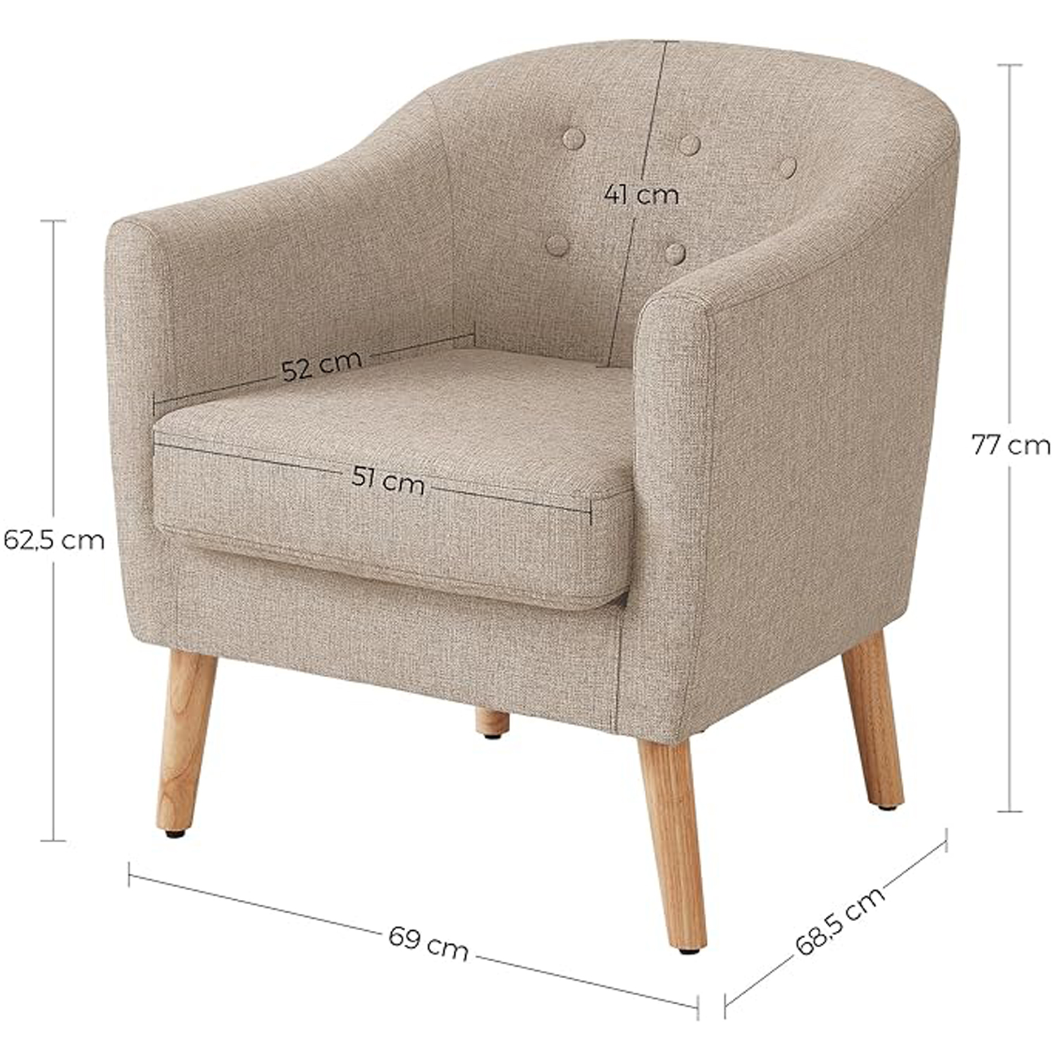 VASAGLE fåtölj, relaxfåtölj, TV-fåtölj, loungefåtölj, i tyg, med stoppat sittdynor, ben i massivt trä, modern, för vardagsrum, matsal, gästrum, kontor, grå LAC005G01