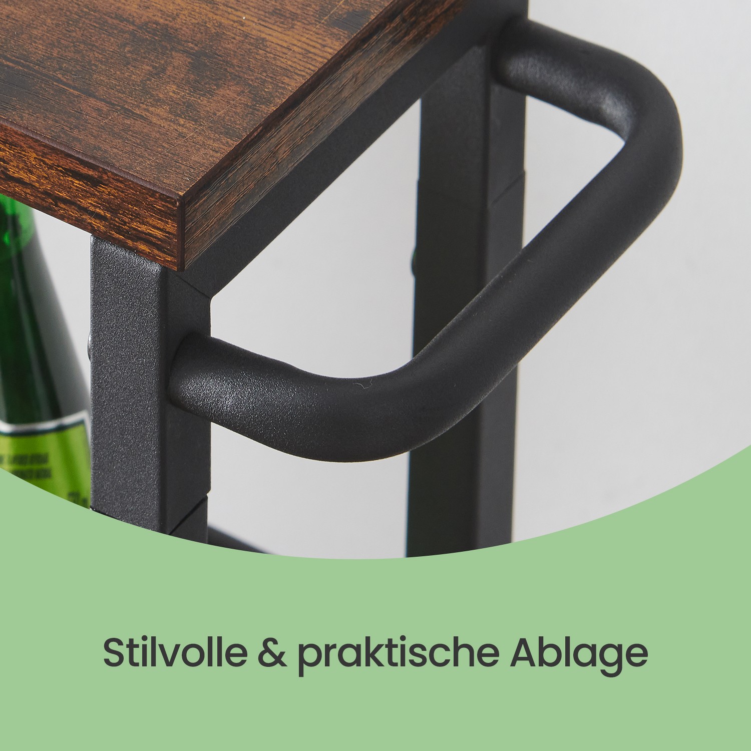 Produktdetaljer: – Färg: Vintagebrun-svart – Material: Spånskiva, stål – Storlek: 13 x 45,4 x 77 cm (D x B x H) – Vikt: 3,8 kg – Max. statisk belastningskapacitet för den övre plattan: 5 kg – Max. statisk belastningskapacitet per gallerkorg: 5 kg – Max. total statisk belastningskapacitet: 20 kg Leveransomfattning: – 1 x rullvagn – 1 x tillbehörspaket – 1 x bruksanvisning VASAGLE Anmärkningar:- Av säkerhetsskäl är det förbjudet för barn att klättra på eller leka med produkten. – Produktens maximala statiska totalbelastningskapacitet är 20 kg. Överskrid inte denna maximala vikt. – Placera inte produkten i en fuktig miljö för att undvika skador. Om du råkar spilla vatten på den, torka omedelbart av den med en torr trasa.