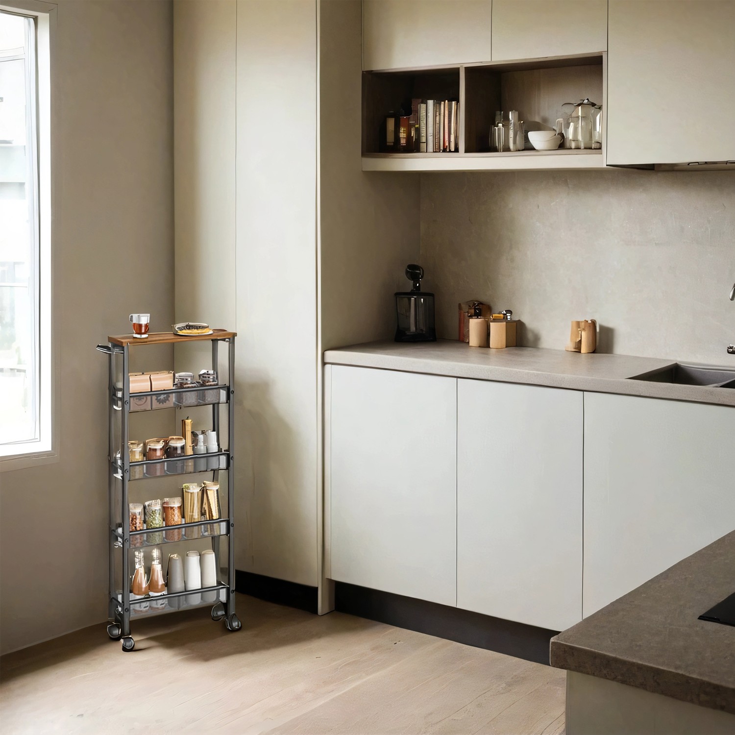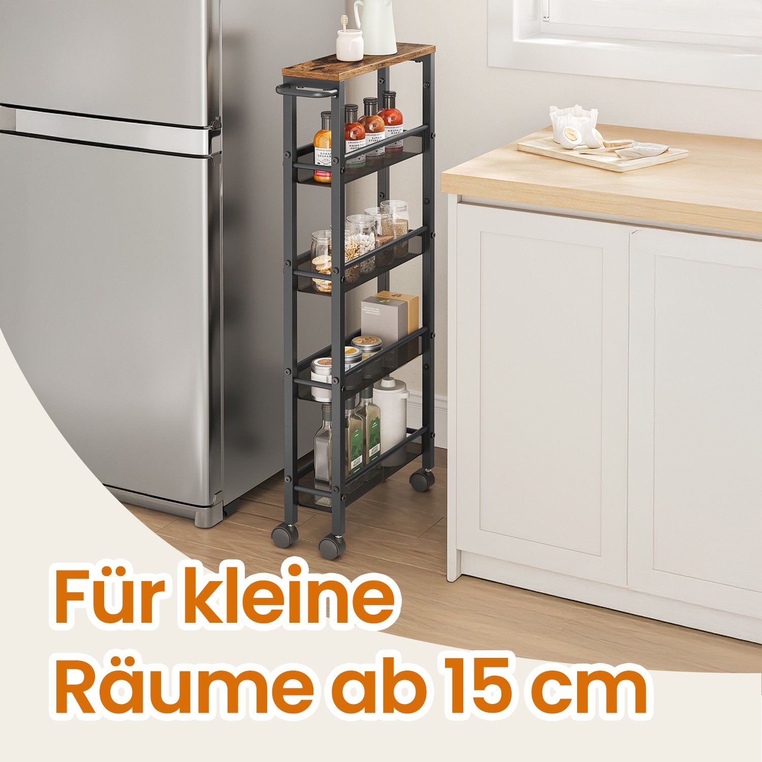 VASAGLE rullvagn 5 nivåer, smal köksvagn, nischhylla på hjul