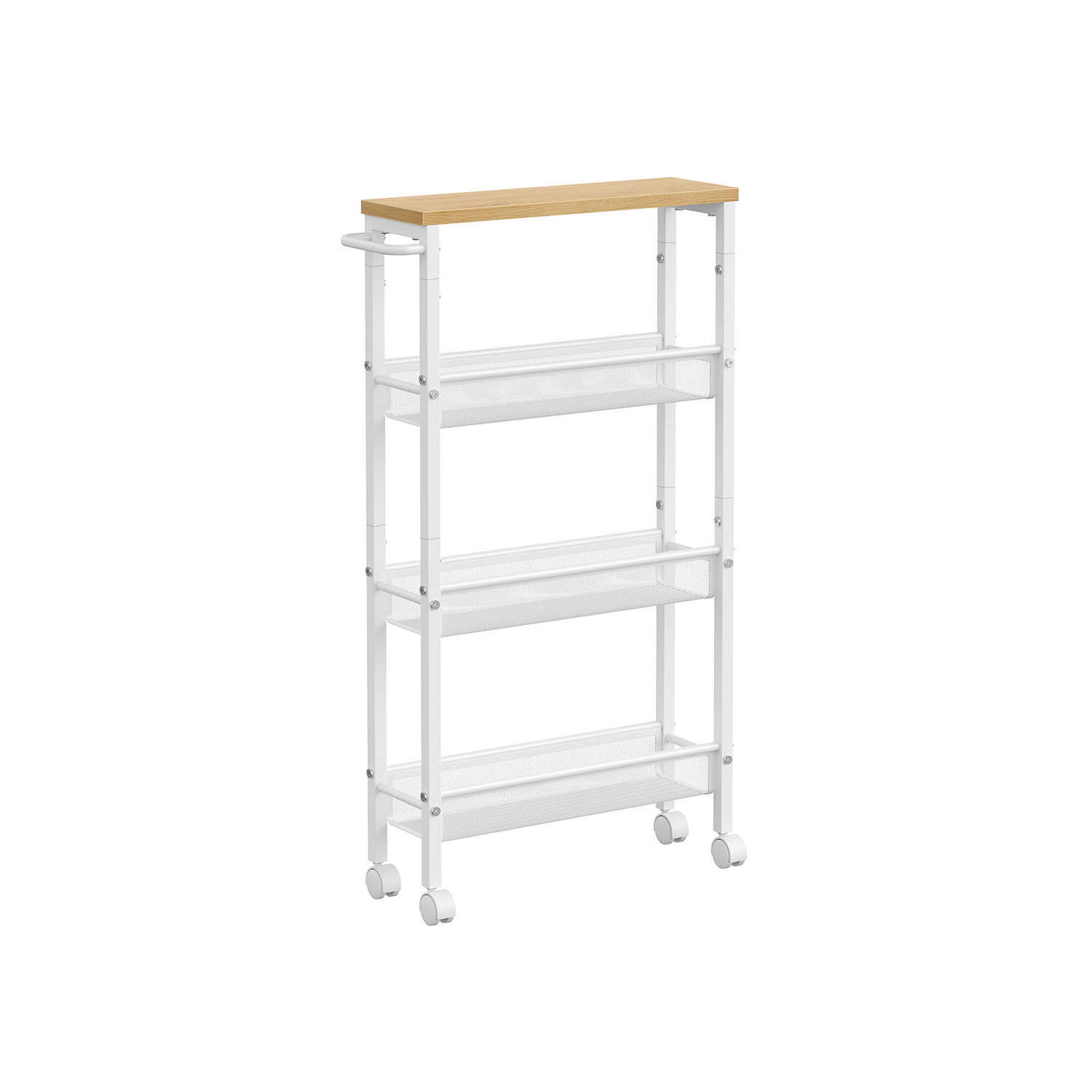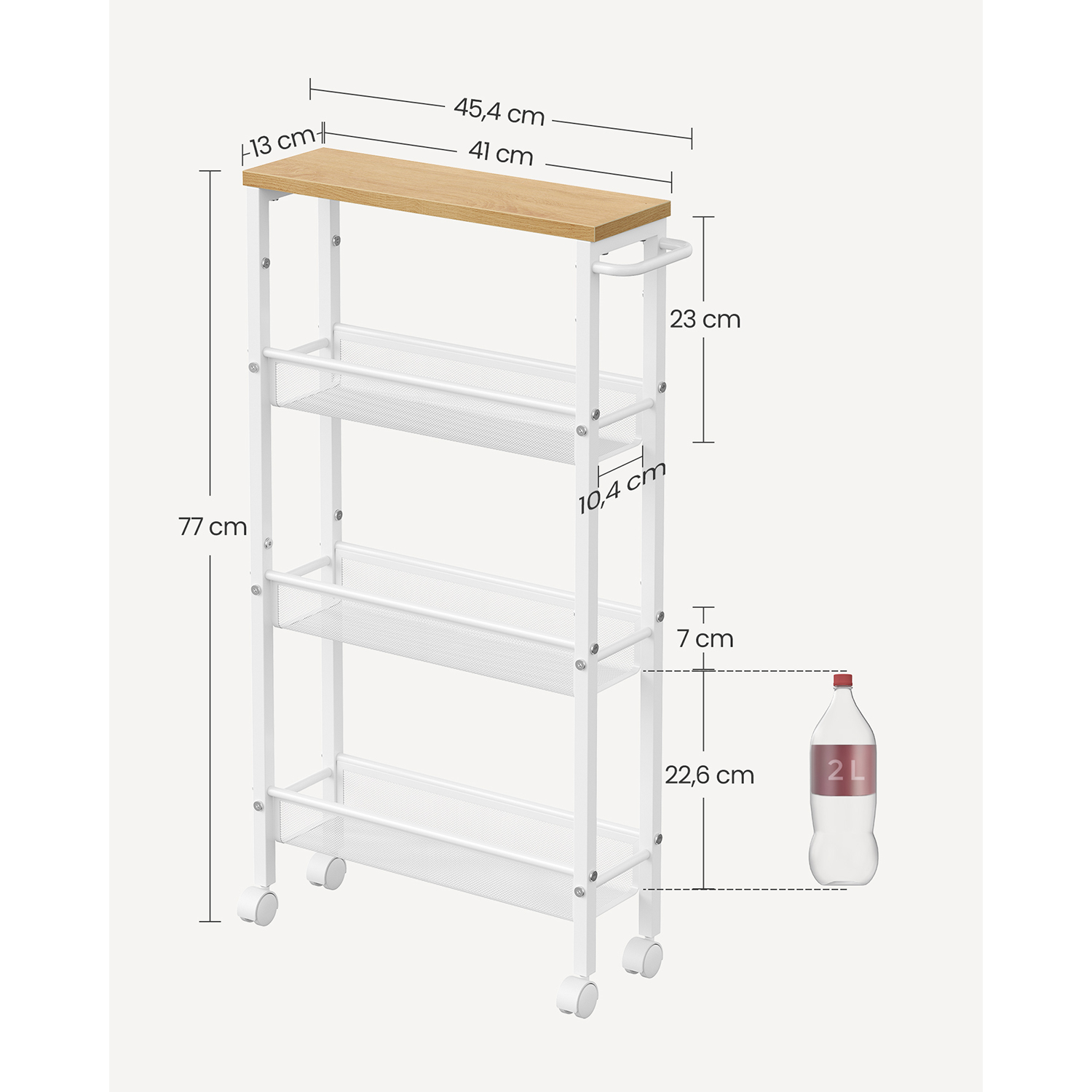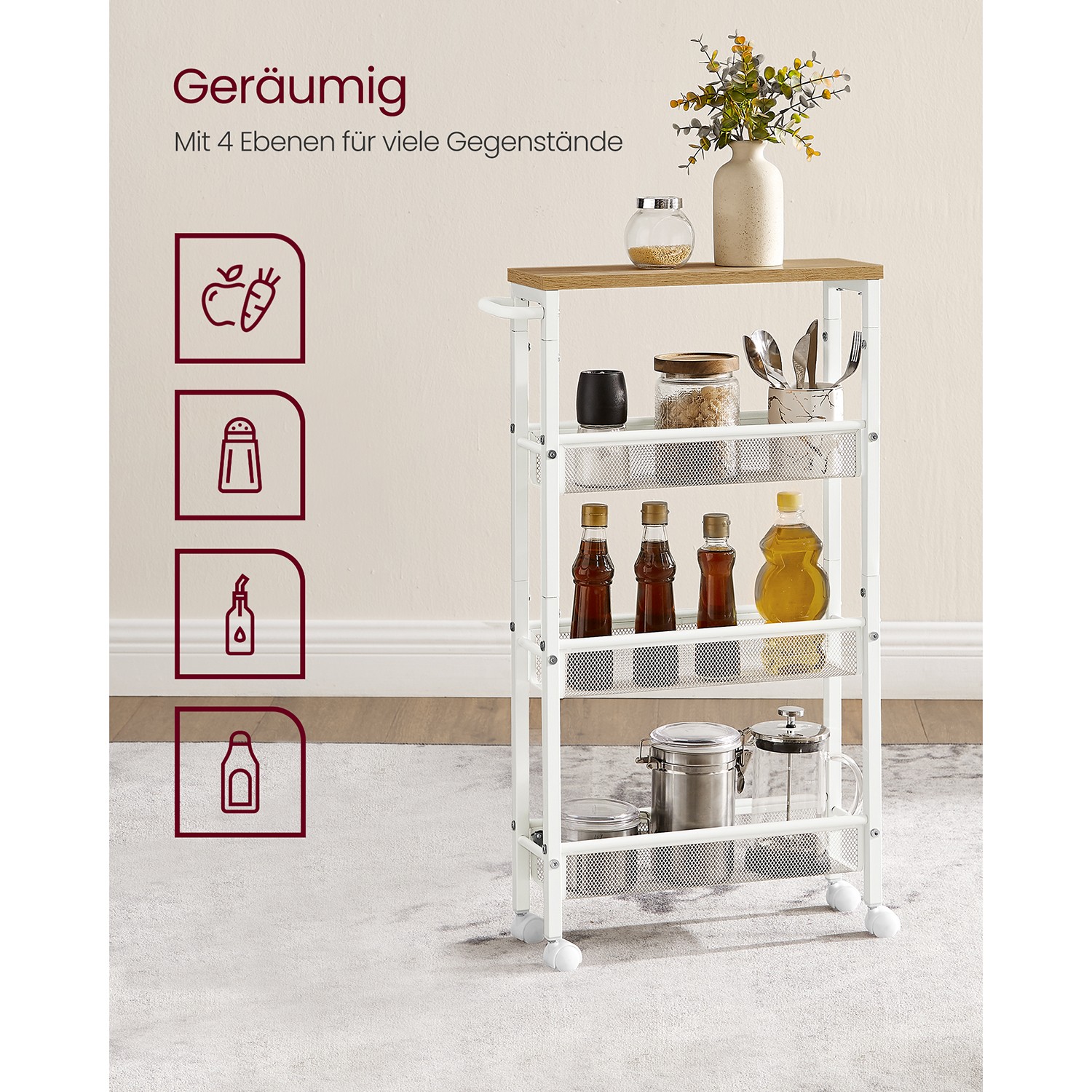 VASAGLE serveringsvagn, kökshylla på hjul, smal, köksvagn, rullvagn, 360° vridbara hjul, metallstativ, för kök, vardagsrum, hemmakontor, vintagebrun-svart LRC032B01