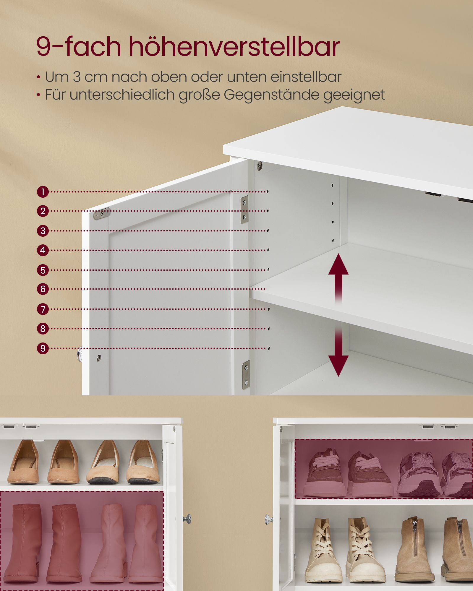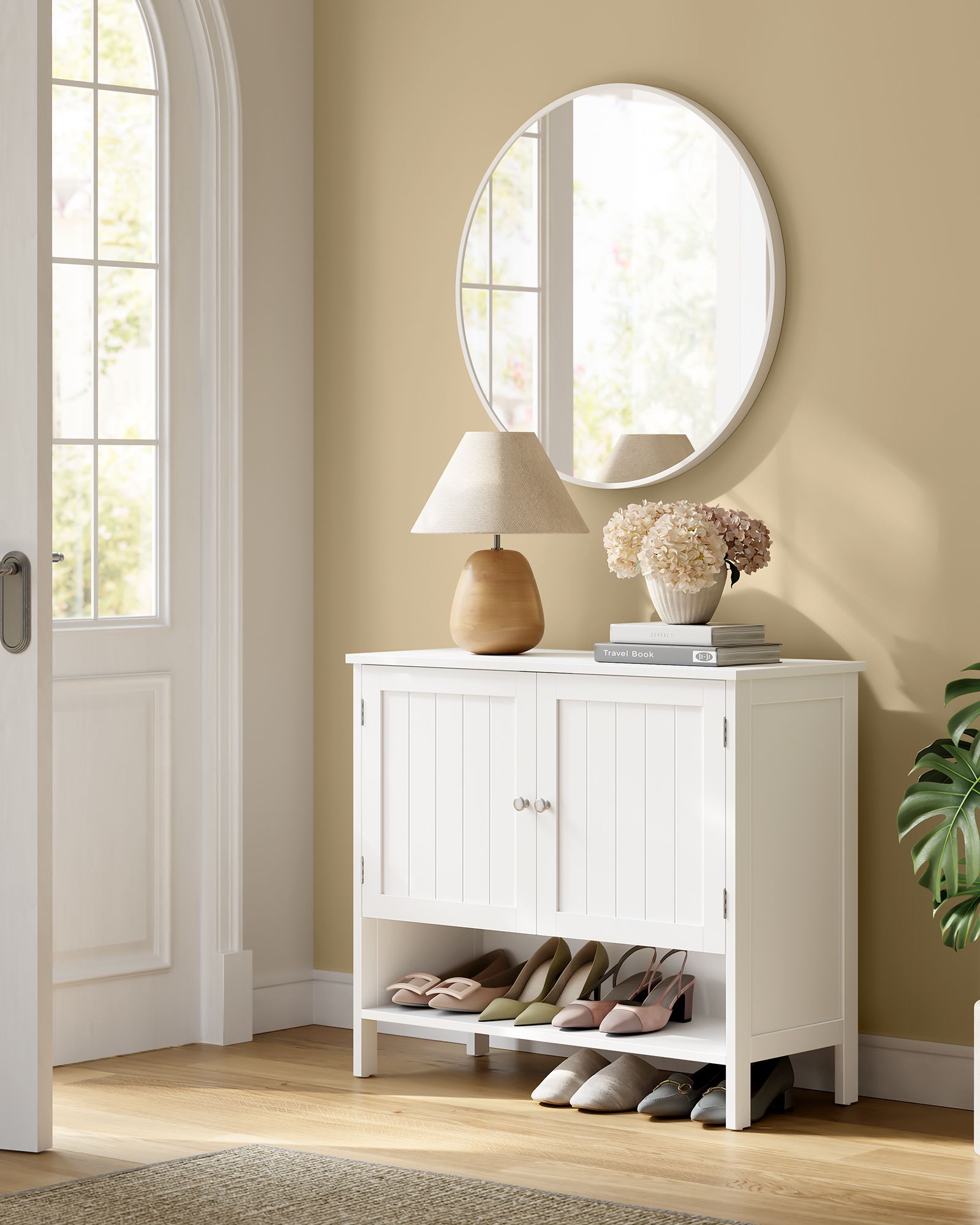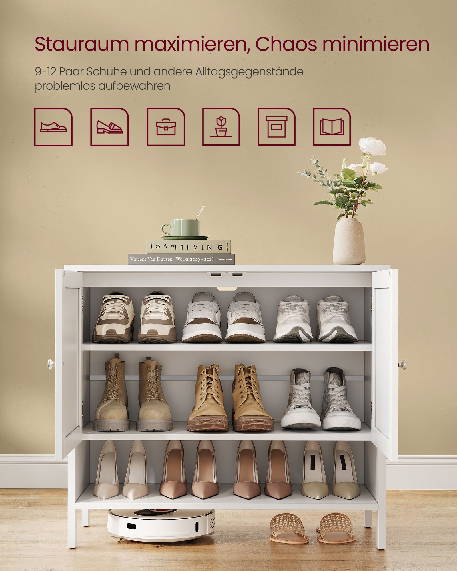 VASAGLE skoskåp, skohylla, skoförvaring, modern lantlig stil, fristående skåp med höj- och sänkbara hyllor, 35 x 80 x 70 cm, hall, skiffergrå LBC044G01