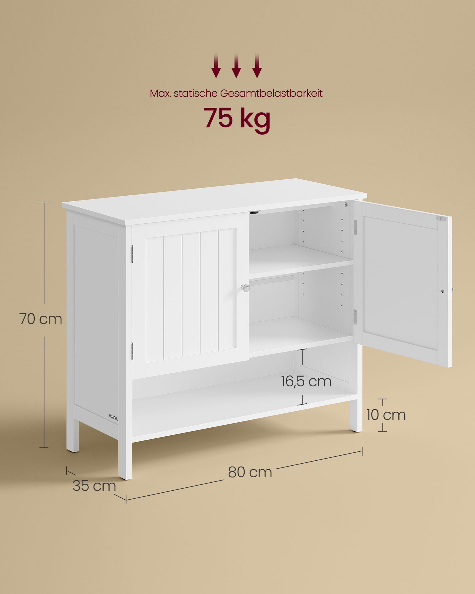 Max. statisk totalbelastning: 75 kg