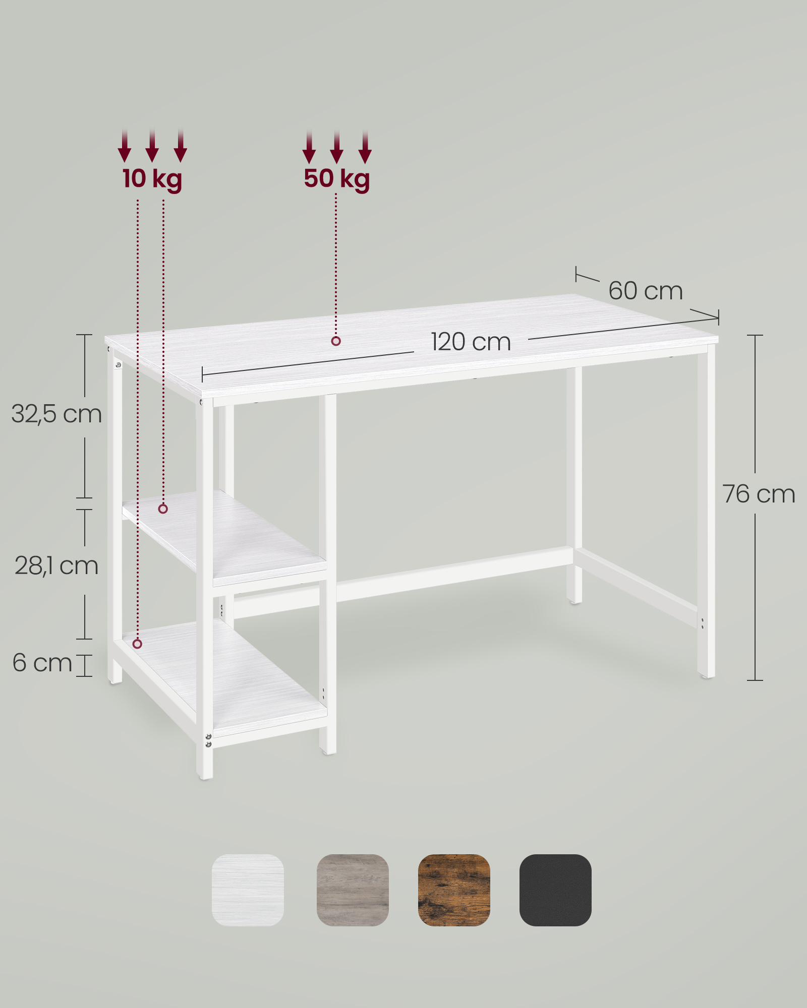 VASAGLE skrivbord, datorbord, PC-bord, kontorsbord, med 2 hyllor på höger eller vänster sida, för kontoret, vardagsrummet, stålstativ, industriell design, svart LWD047B16