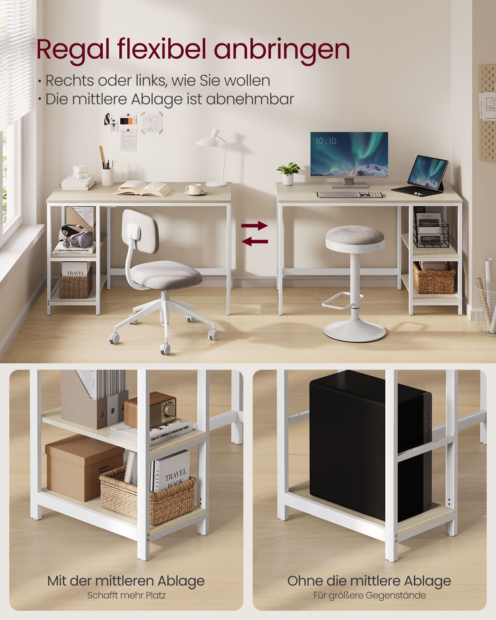 VASAGLE skrivbord, datorbord, PC-bord, kontorsbord, med 2 hyllor på höger eller vänster sida, för kontoret, vardagsrummet, stålstativ, industriell design, svart LWD047B16