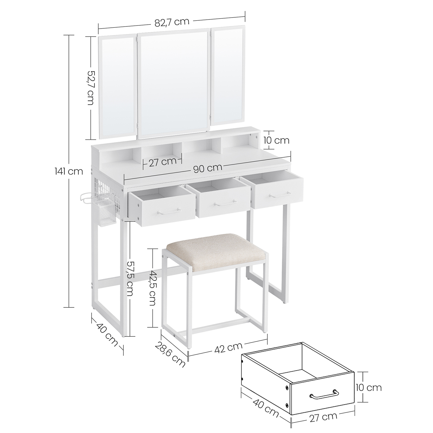 – Mått på bordet: 40 x 90 x 141 cm (D x B x H)