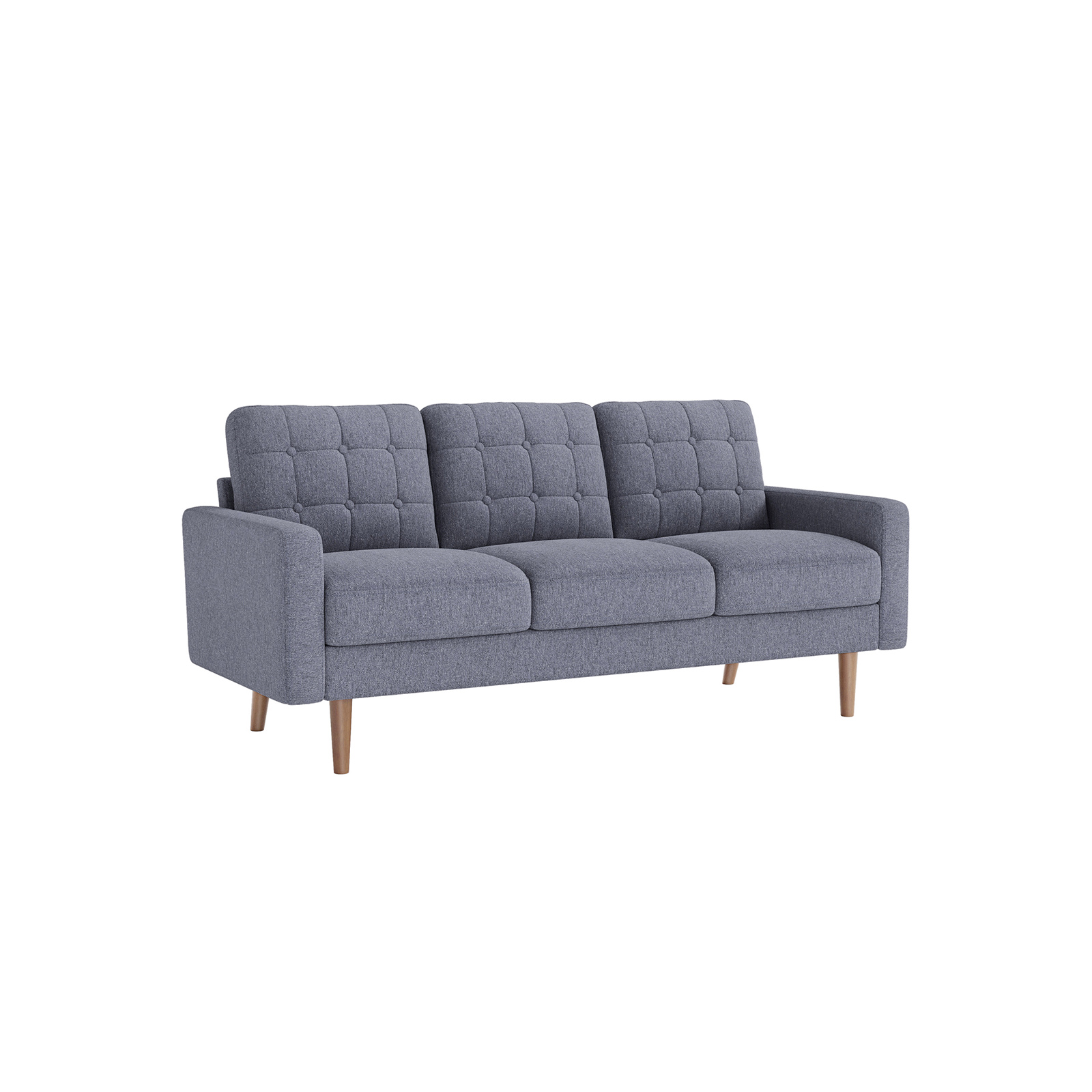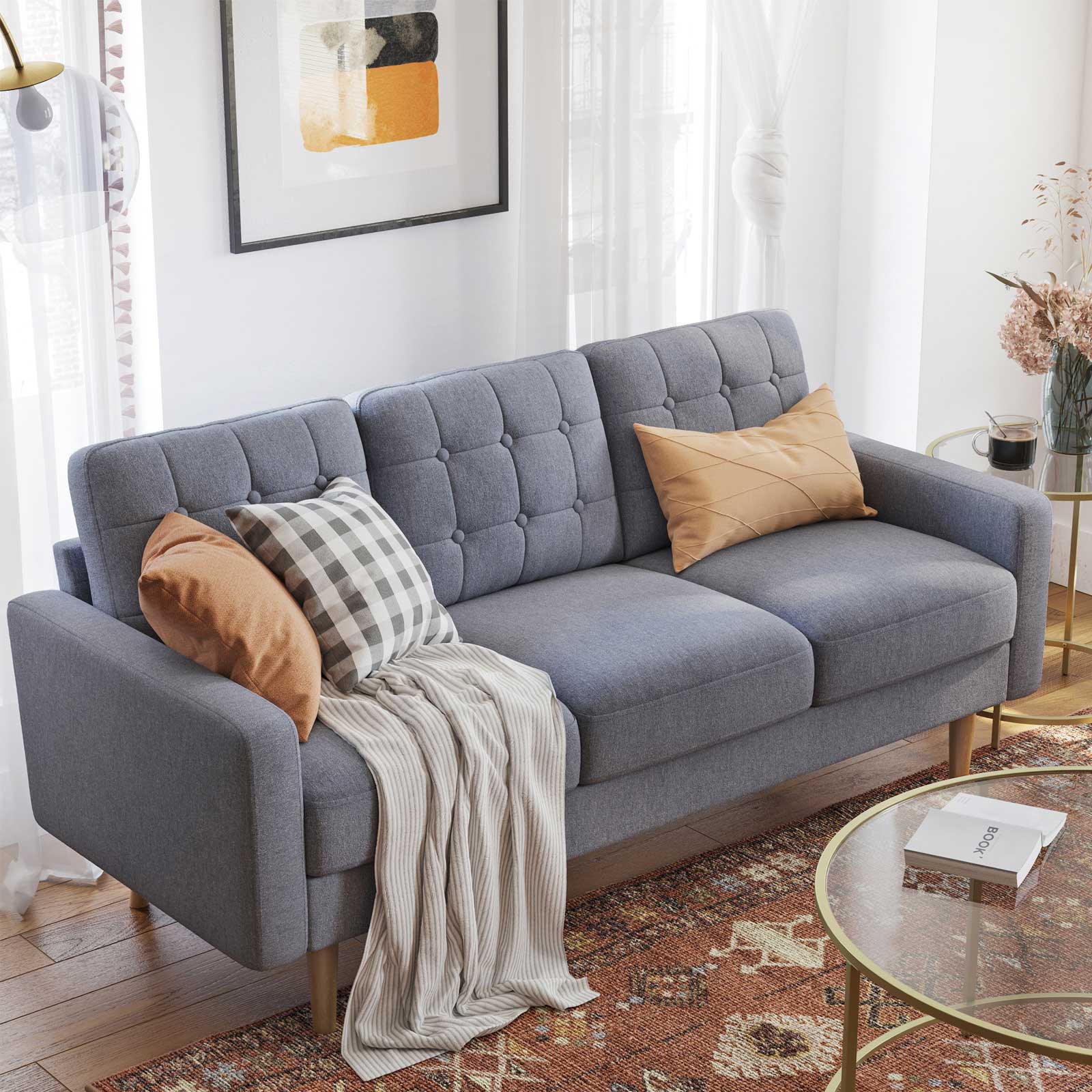 Stil möter komfort Med sitt eleganta utseende, bekväma stoppning och enkla design ger denna soffa dig möjlighet att slappna av helt. Oavsett om du placerar den i vardagsrummet, i studentrummet eller i en kompakt lägenhet kommer den att bli ett hjärtat i ditt hem och en avkopplande plats för din familj och vänner. Stark Denna soffa är utrustad med välstoppade kuddar och en mjuk yta och erbjuder dig en perfekt sittplats för att lindra trötthet. Dessutom stöds denna soffa av fyra hållbara, massiva ben av gummiträ och kan belastas med upp till 300 kg (max. statisk belastningskapacitet).Produktdetaljer: Färg: Grå Material: Polyester, skumplast, eukalyptusträ, gummiträ Storlek: 177 x 72 x 86 cm (L x B x H) Vikt: 38,5 kg Max. total statisk belastningskapacitet: 300 kg Leveransomfattning:- 1 x soffa – 1 x tillbehörspaket – 1 x bruksanvisning (DE, EN, FR, ES, IT) VASAGLE Anmärkningar: – Barn bör endast använda produkten under uppsikt av en vuxen.