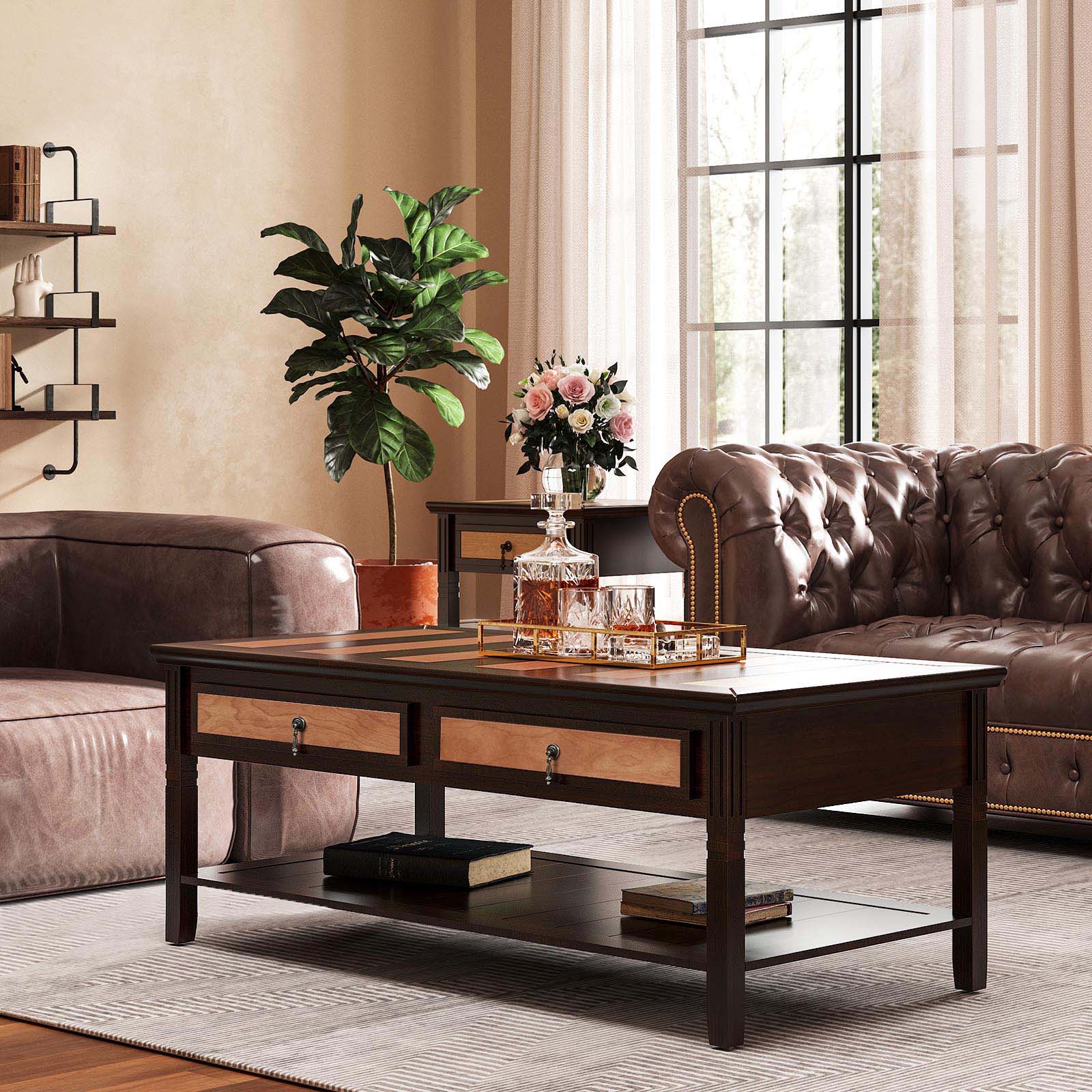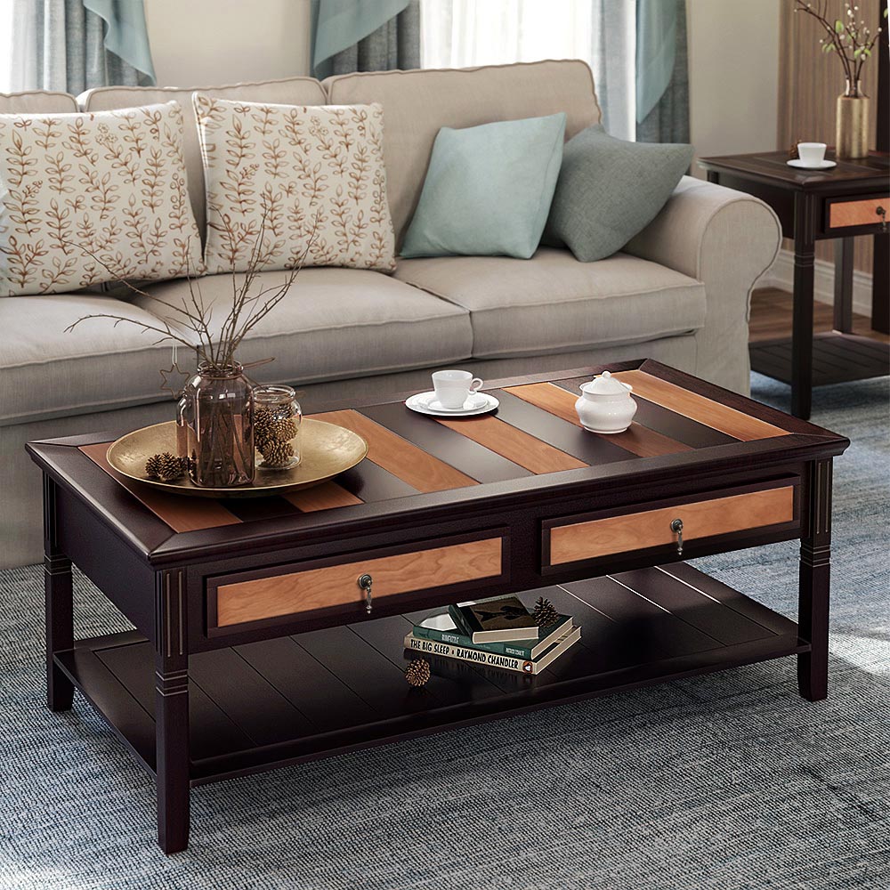 Omdefiniera stilen i ditt hem Placera detta bord i ditt vardagsrum, kontor, arbetsrum eller i receptionen för att välkomna gäster. Färgkombinationen av ljus- och mörkbrunt ger detta bord ett unikt utseende som enkla bord inte kan överträffa.Praktisk design Tack vare den stora bordsskivan, de två lådorna och förvaringsutrymmet i den nedre delen kan du alltid ha allt du behöver inom räckhåll. Ett soffbord? Ett vardagsrumsbord? Hur detta bord slutligen används är helt upp till dig! Stabilitet i fokus Detta soffbord har stabila ben av massivt trä och tål en belastning på upp till 136 kg. Lägg upp fötterna medan du kopplar av på soffan och tittar på en film – bordet kommer inte att wackla! Om du gillar denna möbel bör du definitivt ta en titt på de andra produkterna i samma serie från VASAGLE – en matchande inredning ger välbefinnande – ditt hem kommer att tacka dig! Produktdetaljer:- Färg: Mörk valnöt, ljus lönn – Material: Medeldensitetsfiberplatta (MDF), björkfanér, ben av furu – Mått: 110 x 60 x 45 cm (L x B x H) – Vikt: 27,2 kg – Max. belastbarhet: 136 kg Leveransomfattning: – 1 x soffbord – 1 x tillbehörspåse – 1 x bruksanvisning (DE, EN, FR, ES, IT) VASAGLE Anmärkningar: – Utsätt inte produkten för starkt solljus under en längre tid. – Produkten får inte komma i kontakt med vassa föremål för att undvika skador.