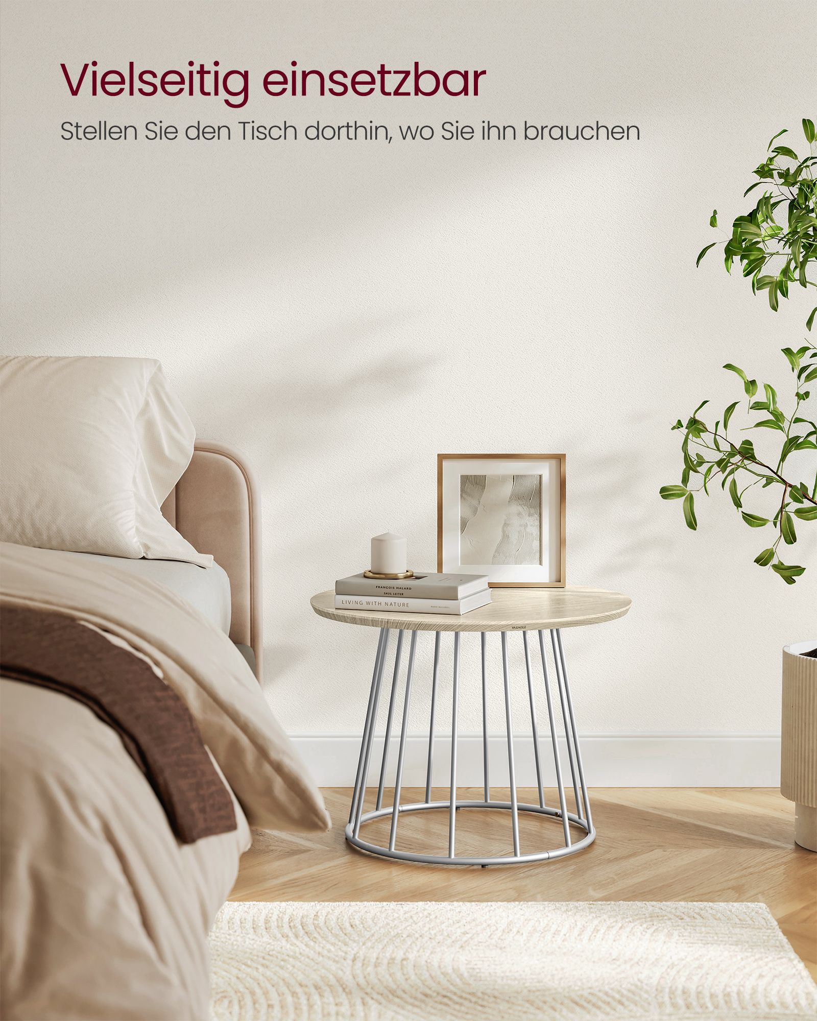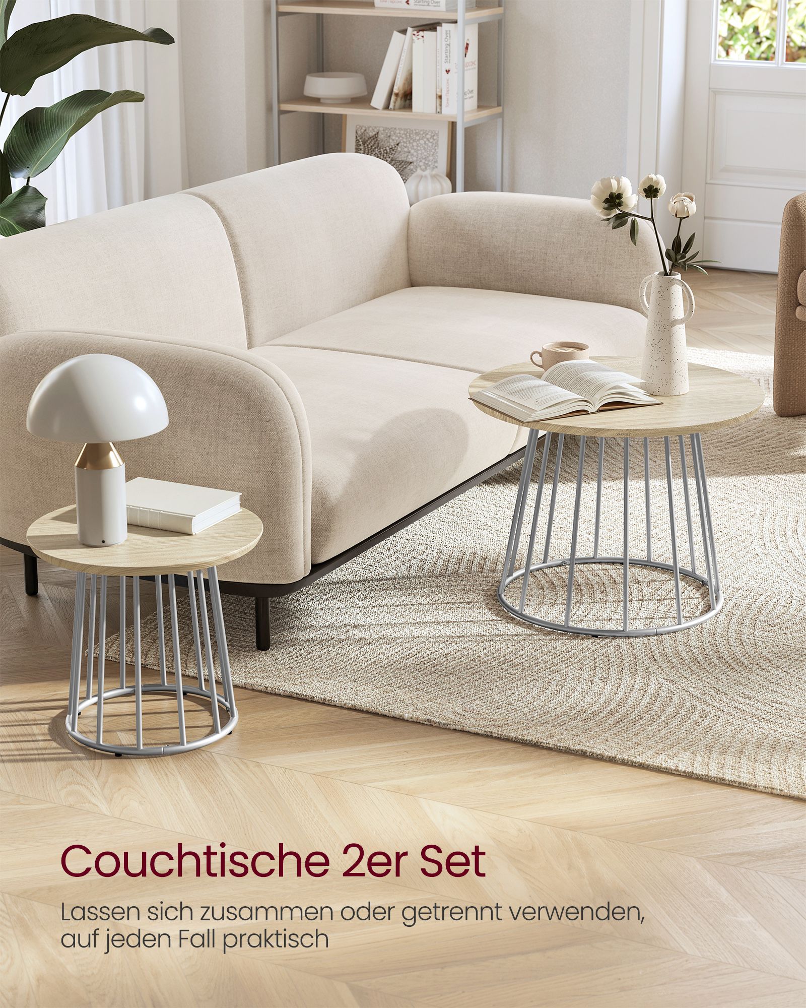 VASAGLE soffbord, rund, 2-pack, modernt, runt sidobord, med stålstativ, för vardagsrum, sovrum, ebenholts svart LCT045B56