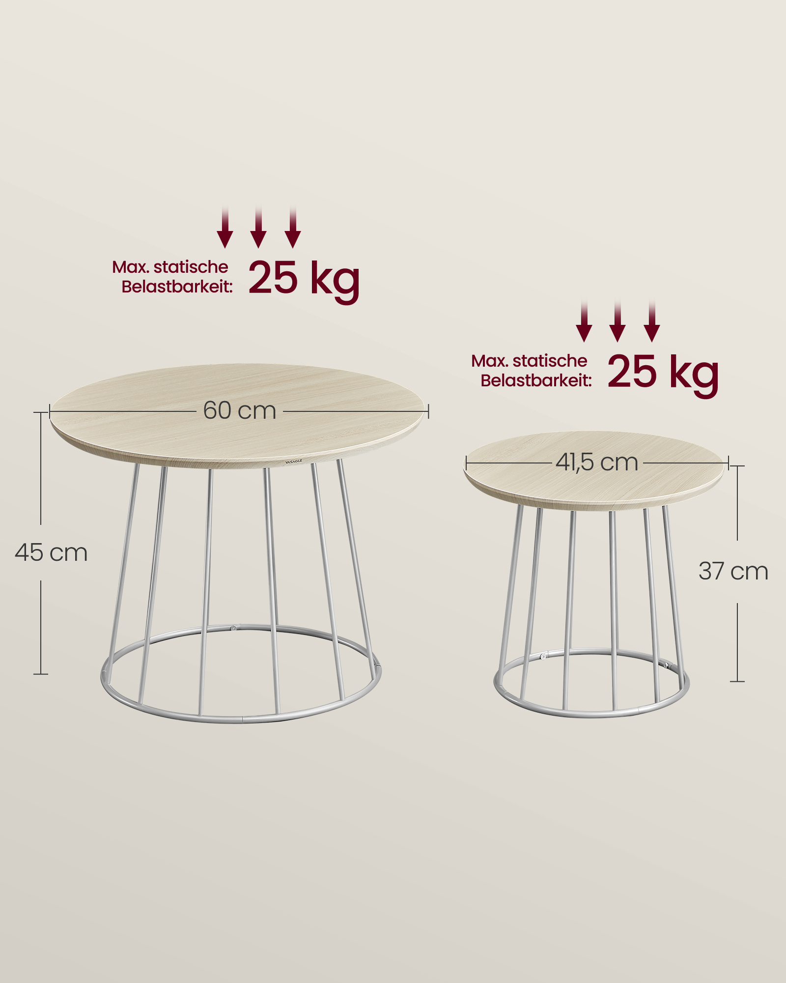Max. statisk belastningskapacitet för varje bord: 25 kg