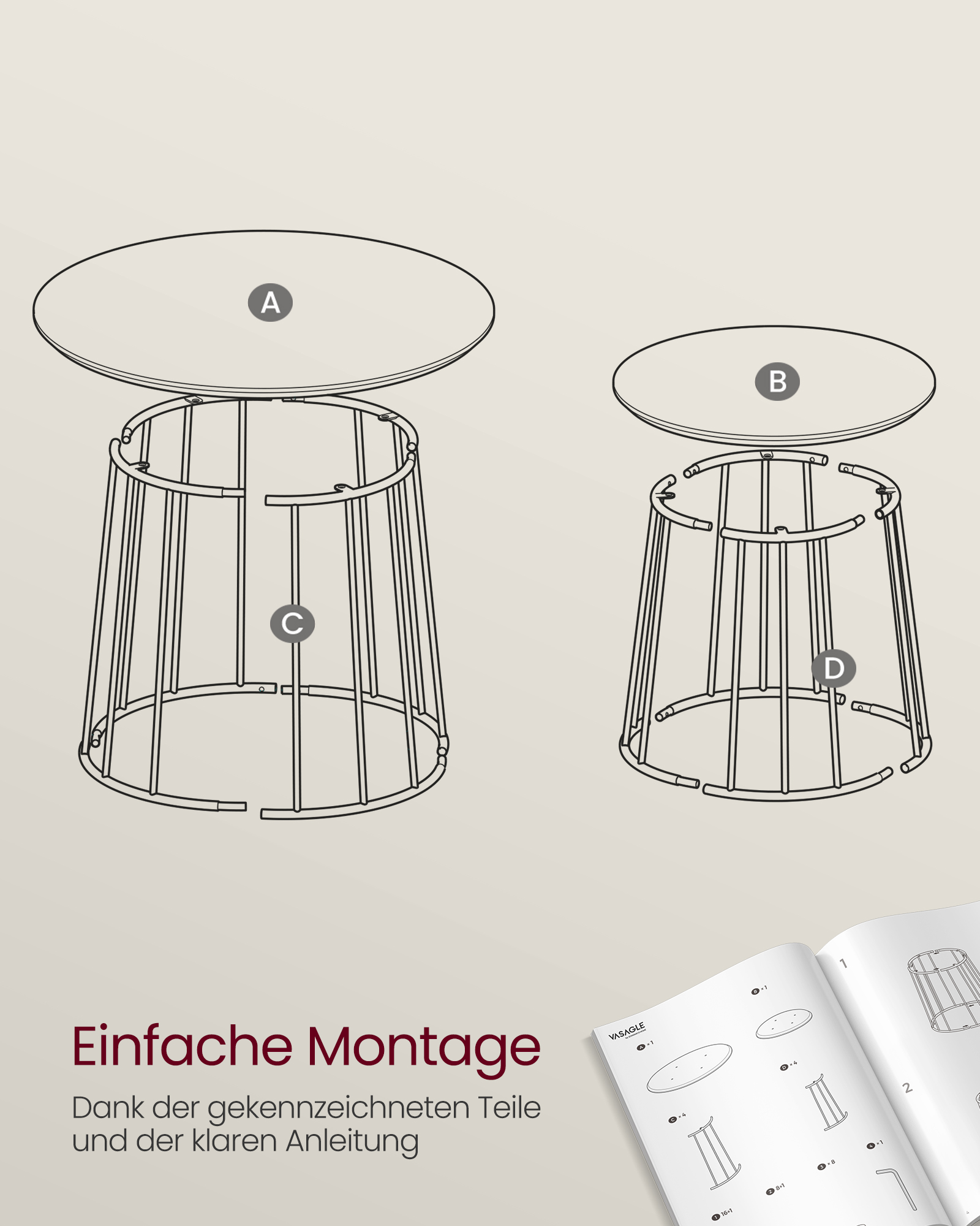 Storlek på det stora bordet: 60 cm d, 45 cm H