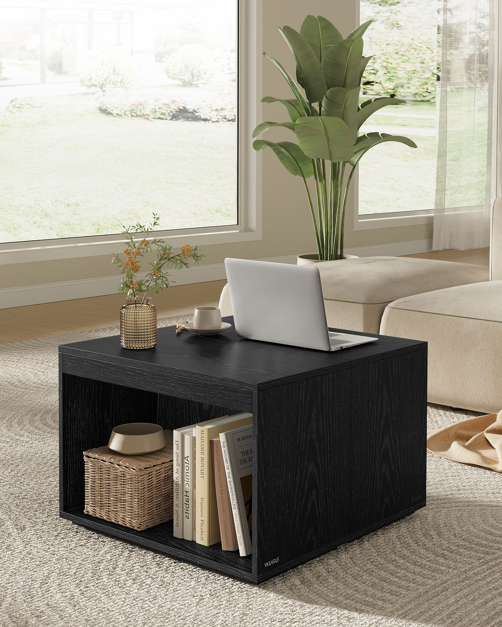 VASAGLE soffbord 3-pack, sidobord, kaffebord, bord med förvaringsutrymme, anpassningsbart, rektangulärt, modernt, för vardagsrum, sovrum, arbetsrum, ebenholtsvart LCT301B01