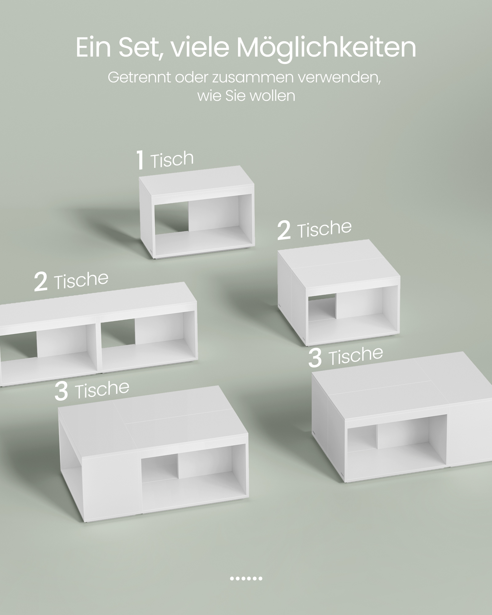 VASAGLE soffbord 3-pack, sidobord, kaffebord, bord med förvaringsutrymme, anpassningsbart, rektangulärt, modernt, för vardagsrum, sovrum, arbetsrum, ebenholtsvart LCT301B01