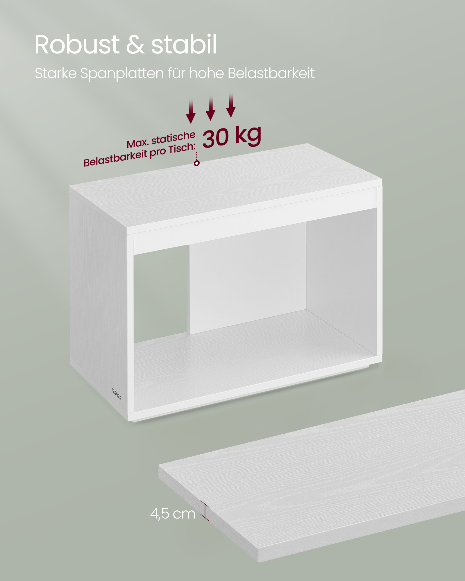 Storlek på varje litet bord: 30 x 60 x 40 cm (D x B x H)