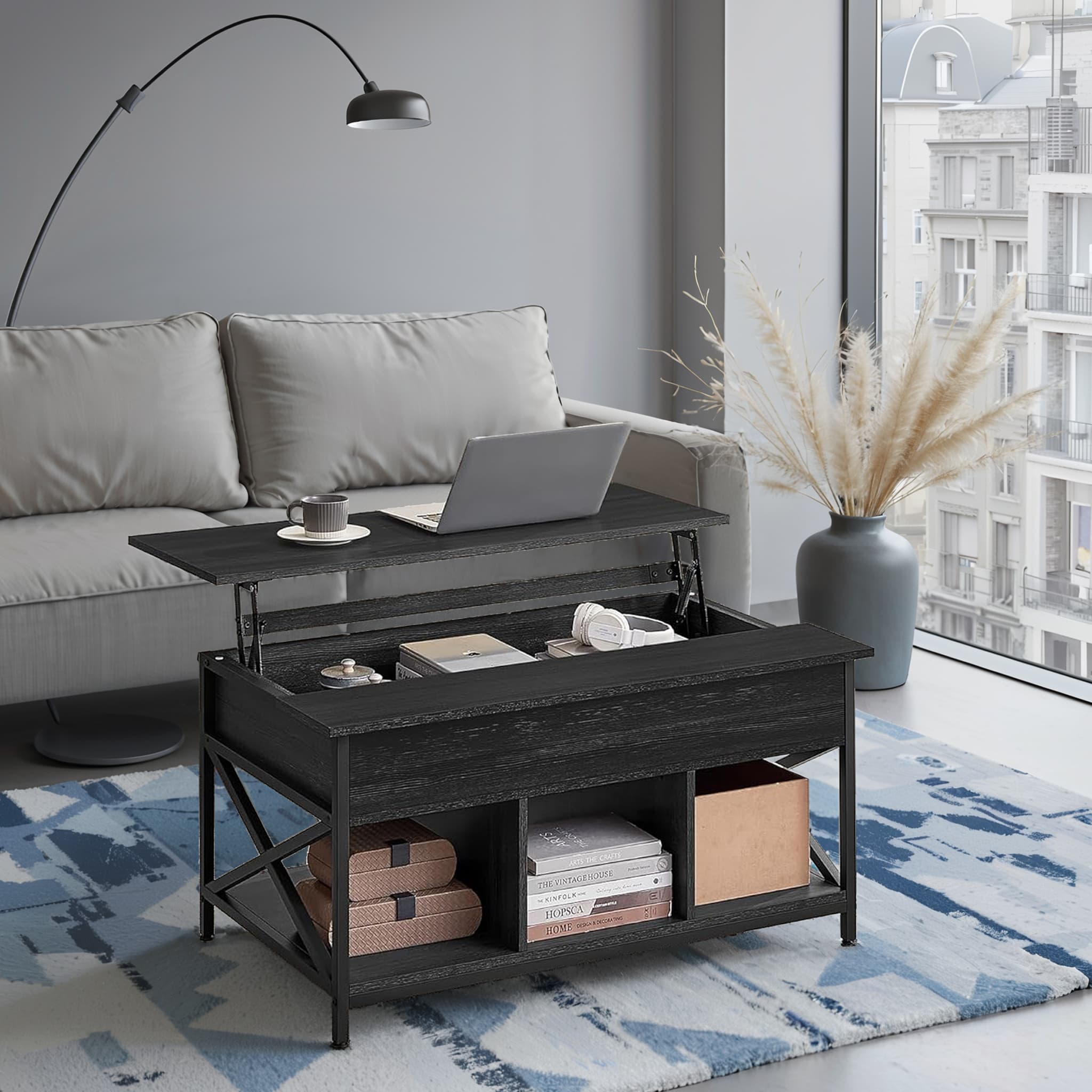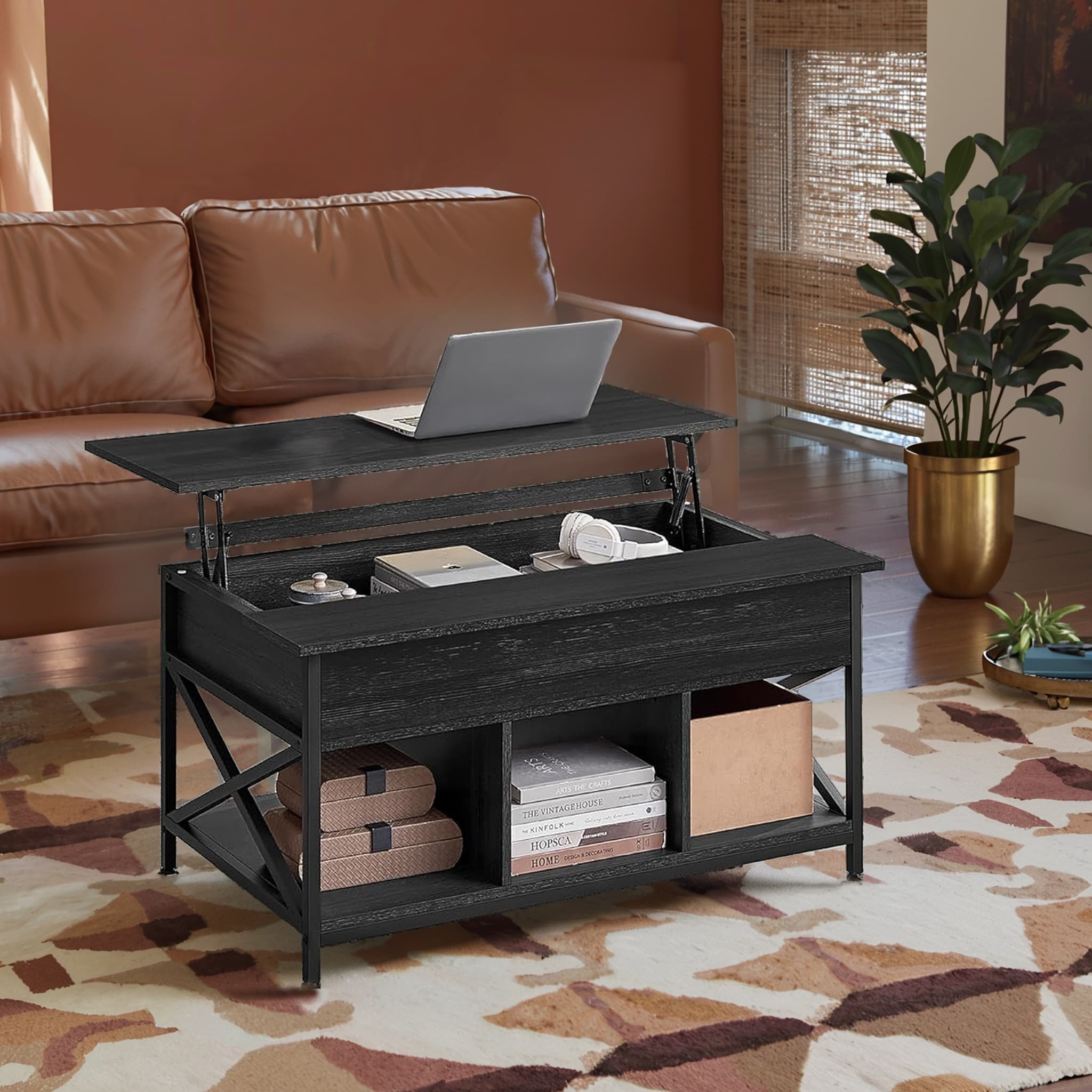 Soffbord, höj- och sänkbart bordsskiva, rymligt, vardagsrumsbord, 60 x 100 x (48-62) cm, snövit-vit
