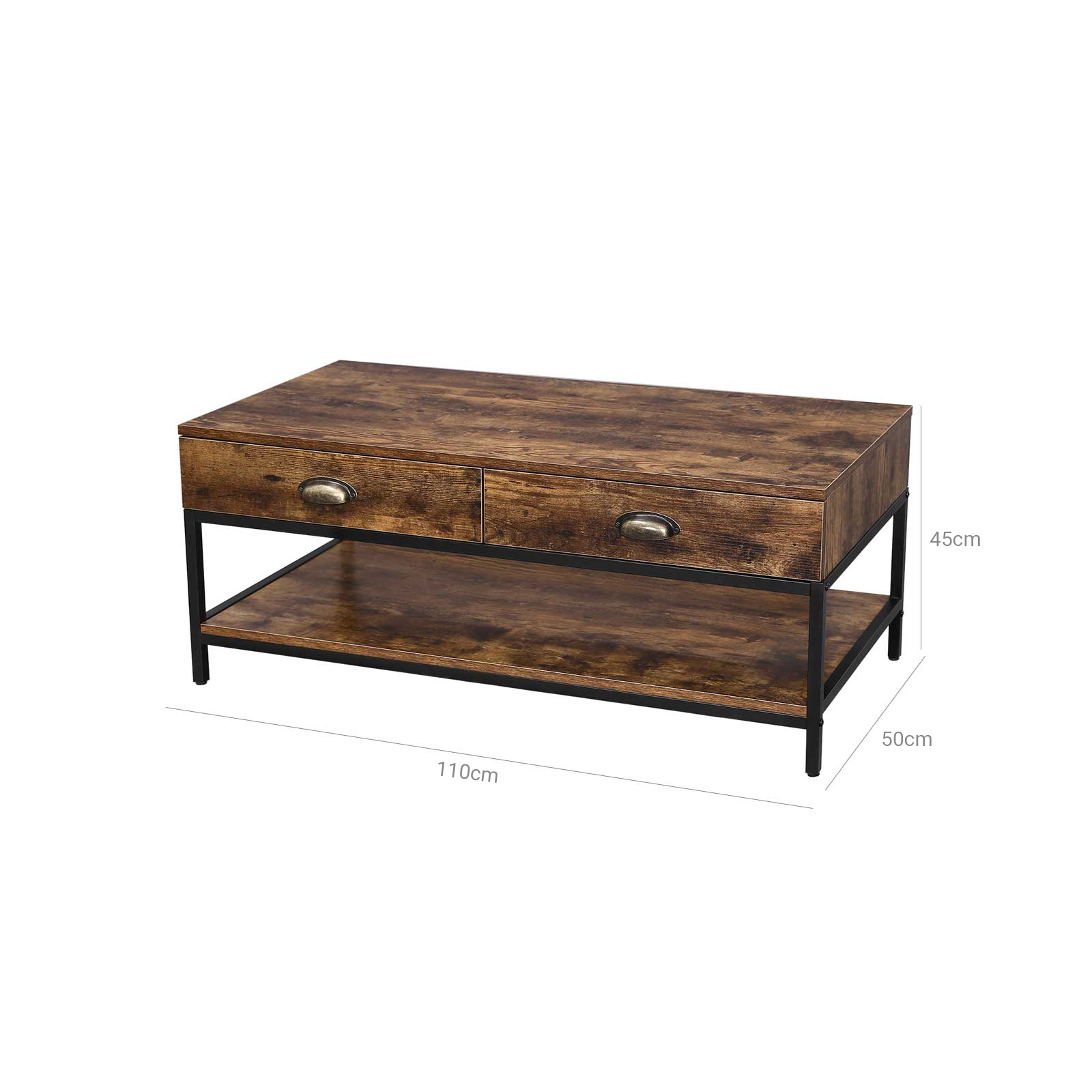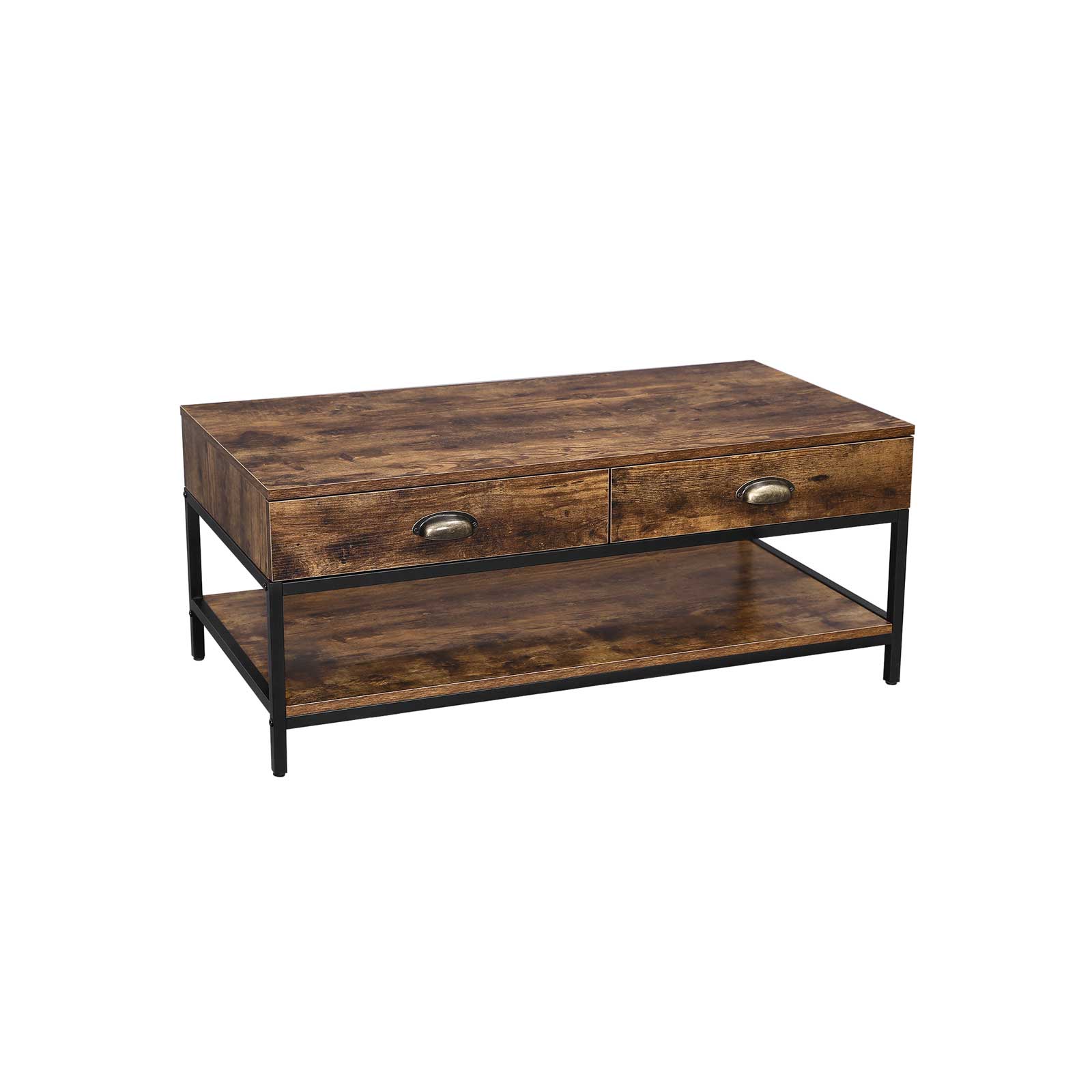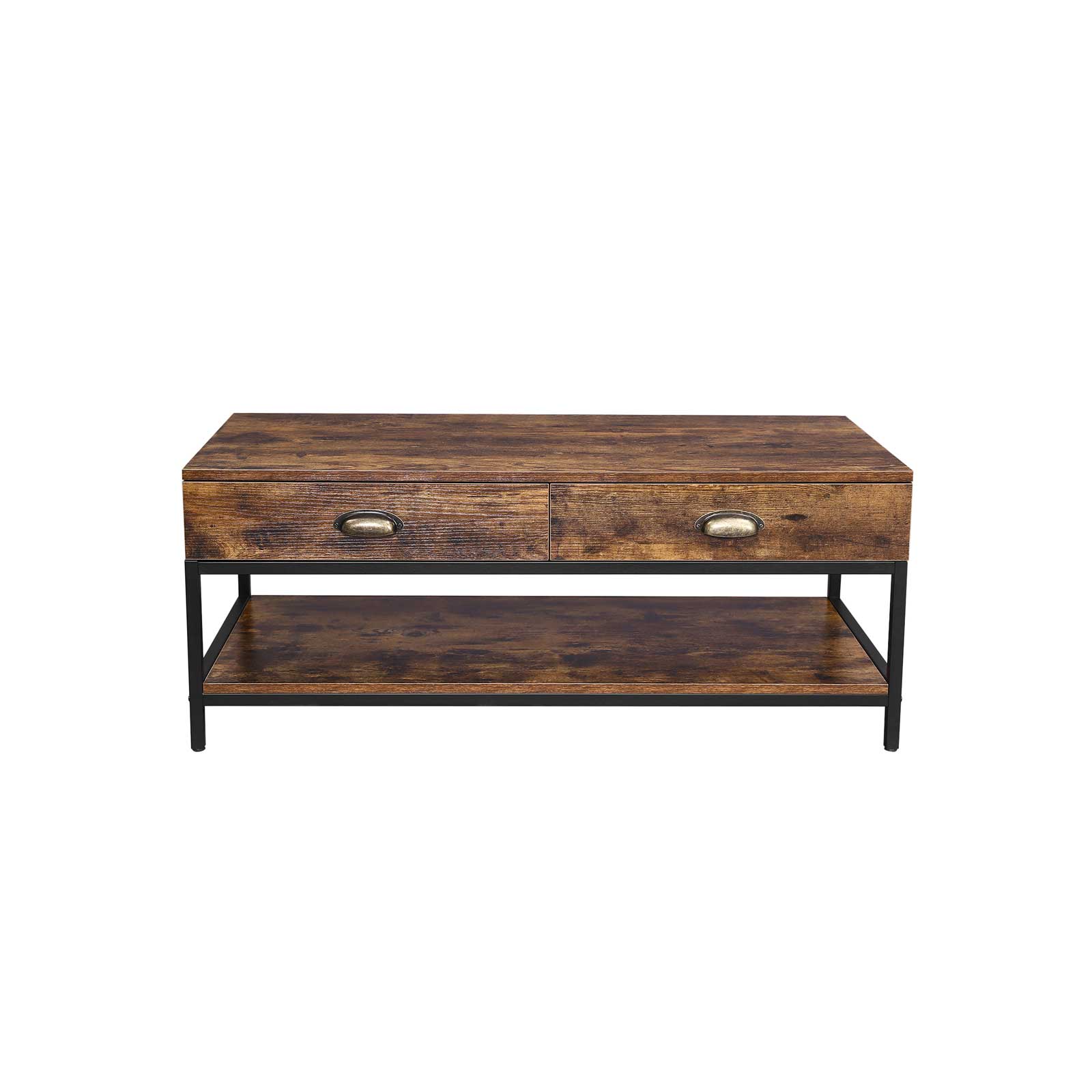 VASAGLE soffbord i industriell design, vardagsrumsbord med 2 lådor och hyllplan, soffbord med stabil metallram, soffbord, vardagsrum, trälook, vintage LCT43X