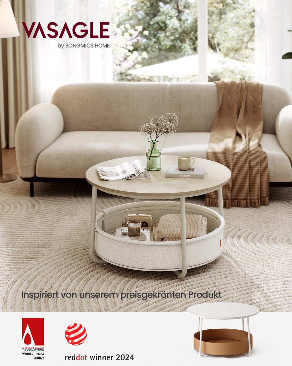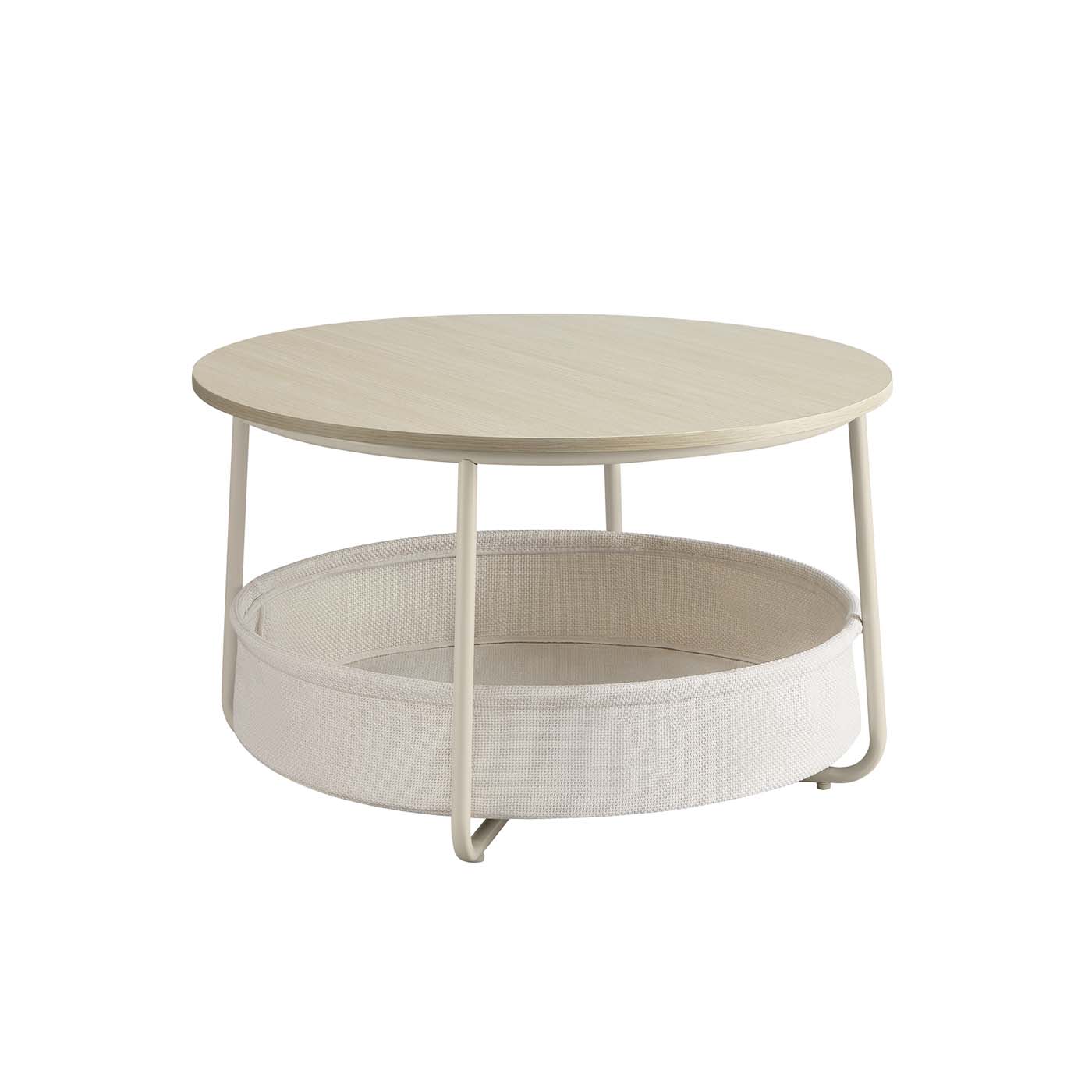VASAGLE Rund soffbord, bord med förvaringsutrymme, sidobord, vardagsrumsbord med korg i tyg, modernt, metallram, bläck svart-skiffergrå LCT244B56