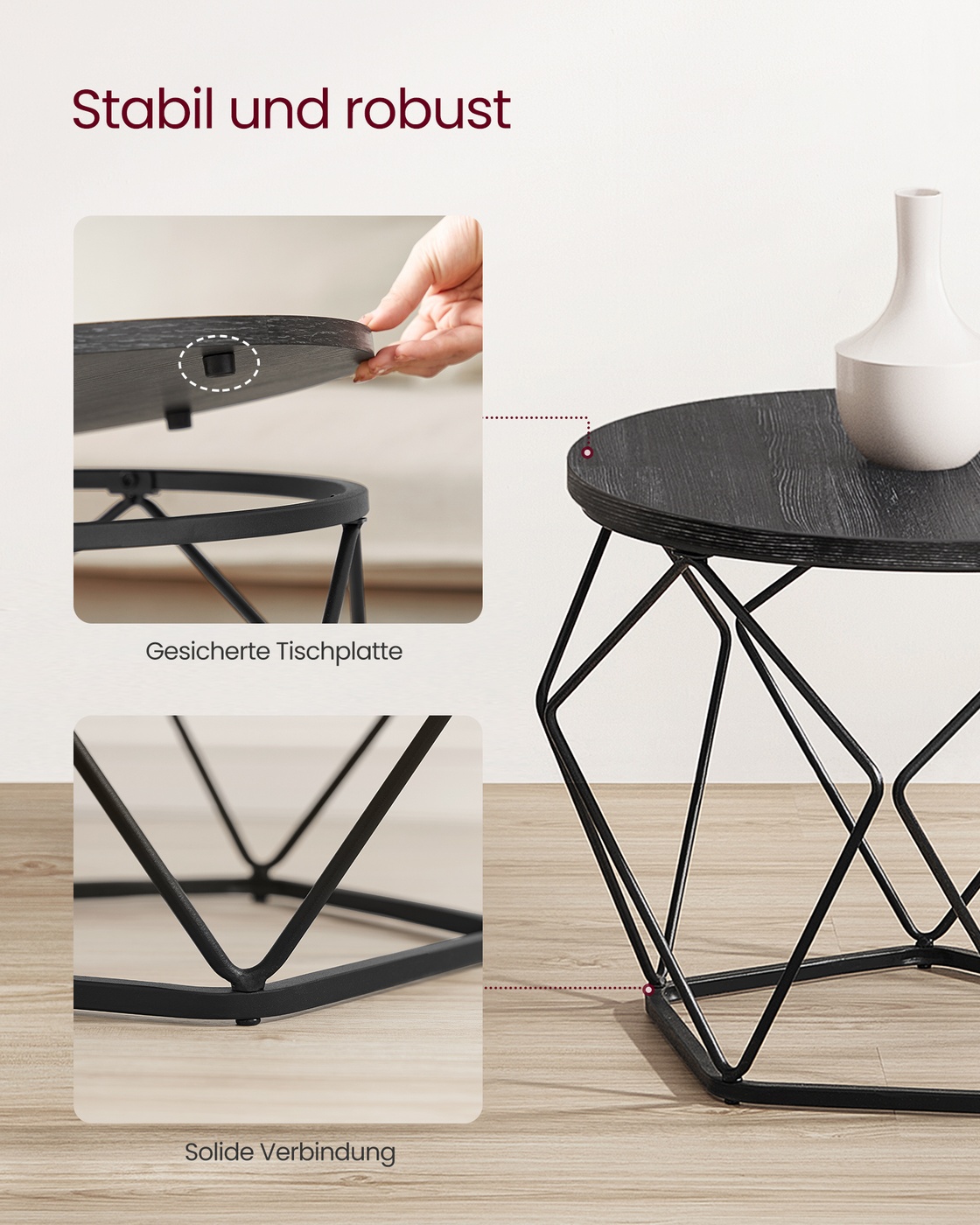 VASAGLE Säg adjö till traditionella soffbord med tråkig design! Detta geometriska soffbordsset ger karaktär och stil till ditt hem, oavsett var du placerar det.