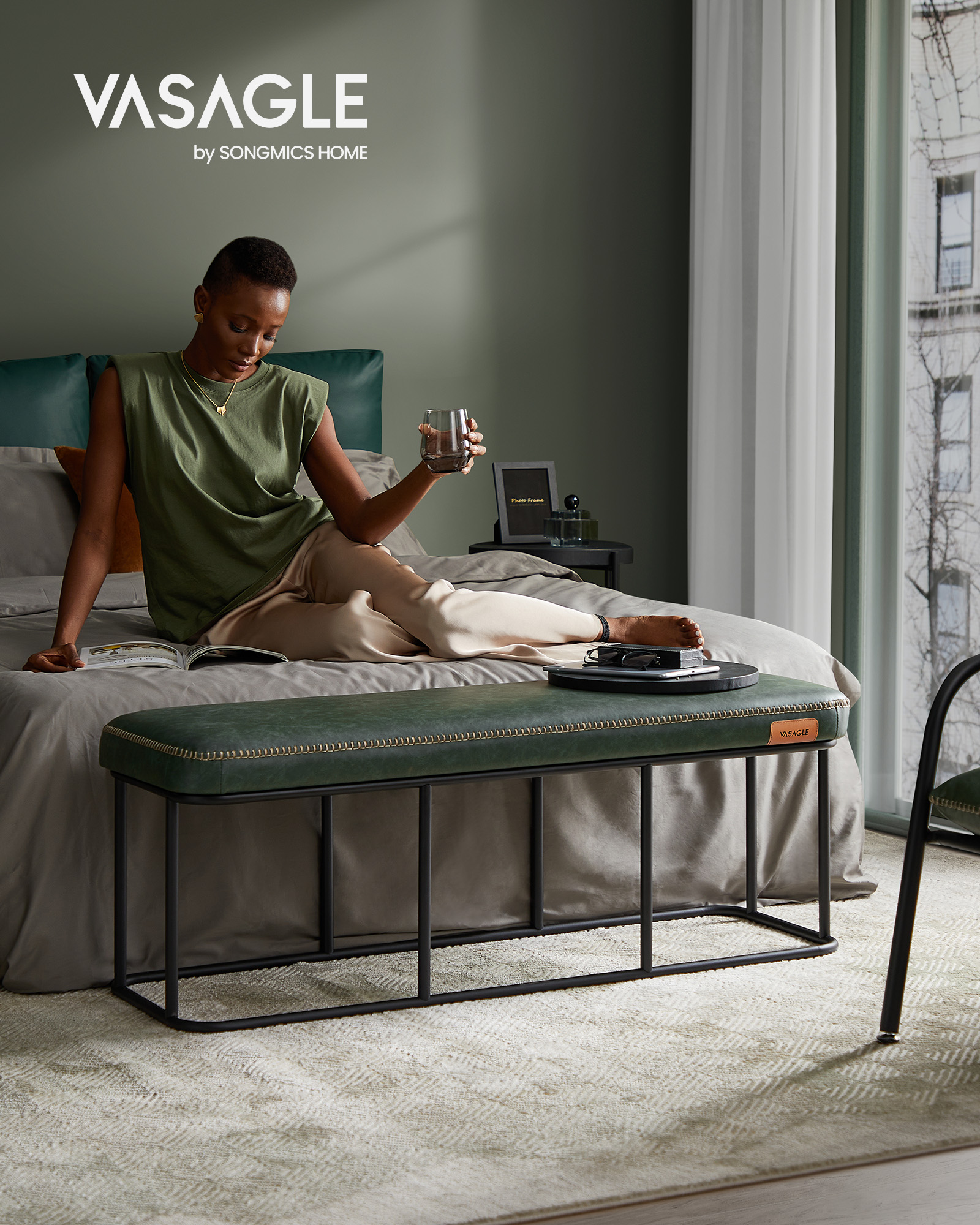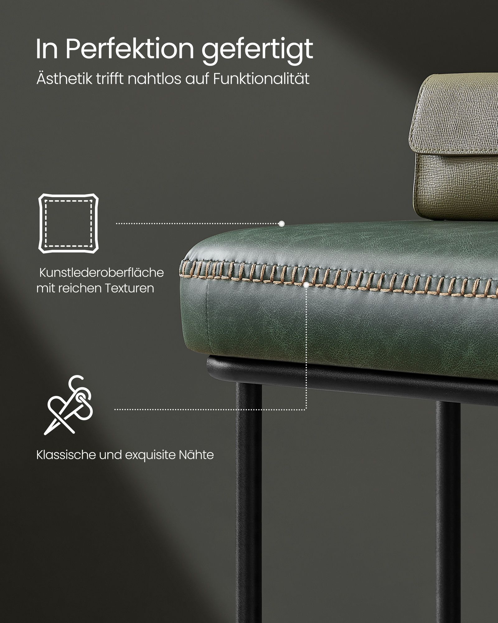 VASAGLE EKHO-kollektion – sovrumssoffa, konstläder, sömmar, matsalssoffa, sängsoffa, bänk med metallram, vardagsrum, mid-century modern-stil, belastningskapacitet upp till 300 kg, karamellbrun LOM073K01