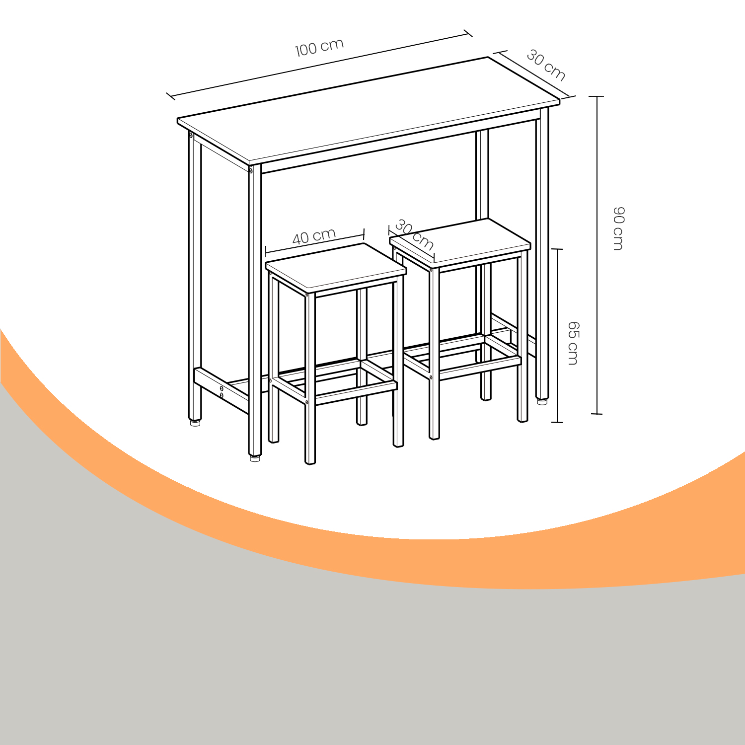 – Bordets mått: 100 x 40 x 90 cm (L x B x H)